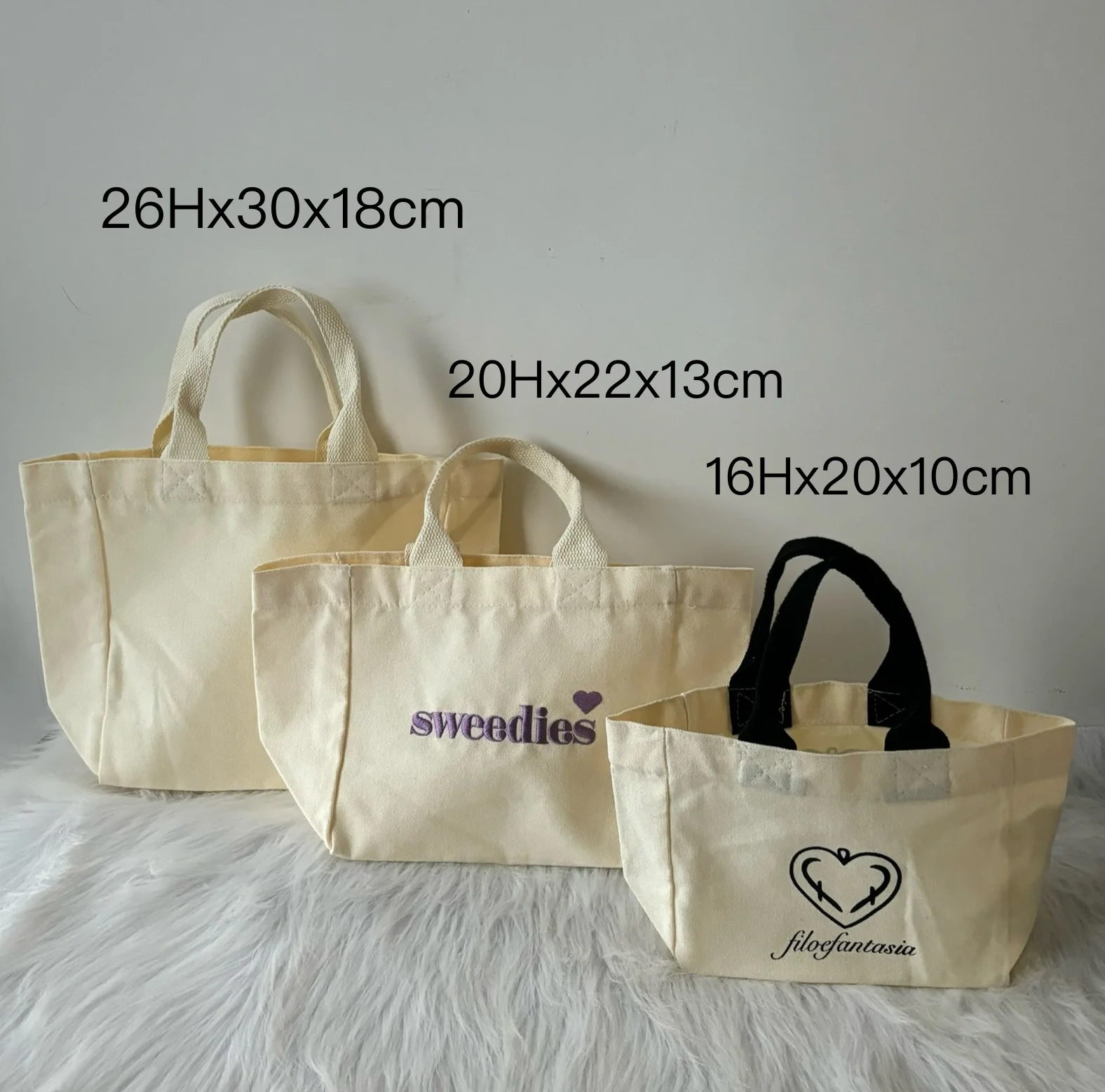 Wholesale 100pcs/lot Recycled Reusable Daily Handbag Custom Logo Cotton Canvas Tote Bag Convenient Shopping Women Gift Bag