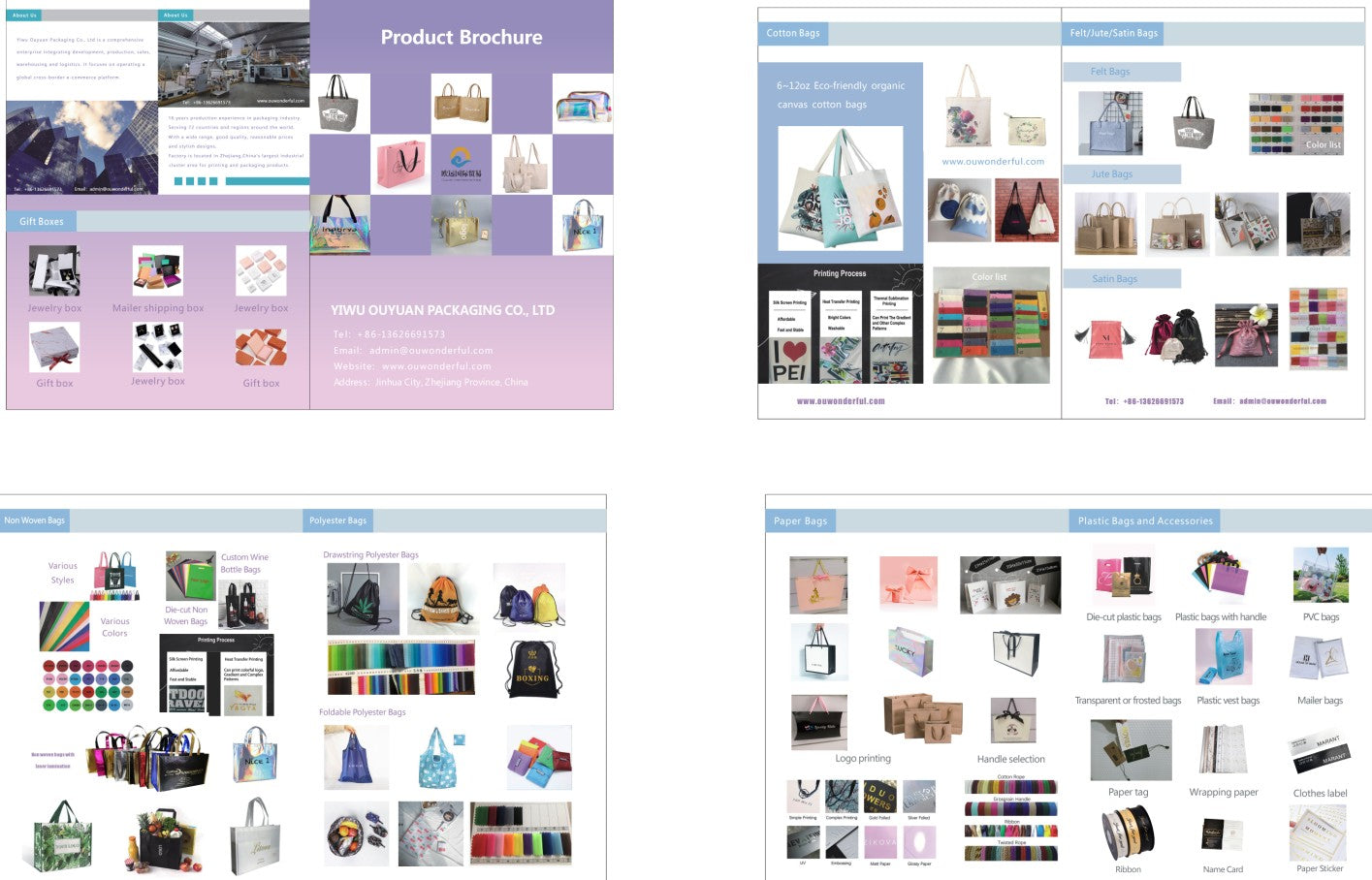 A: Gift paper bags,paper boxes,mailer bags,non woven bags,cotton bags,plastic bags,felt bag,hang tags etc.