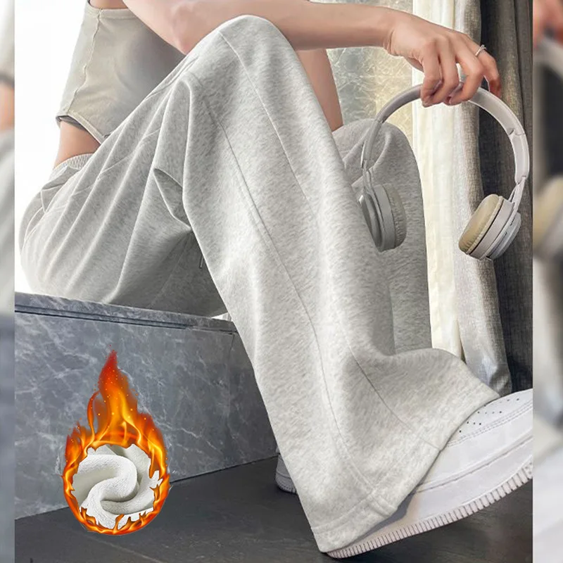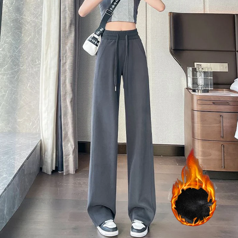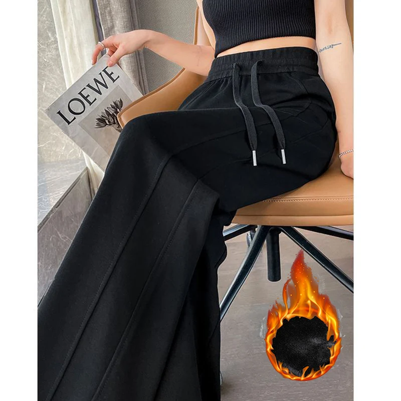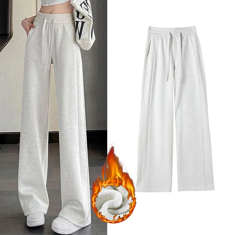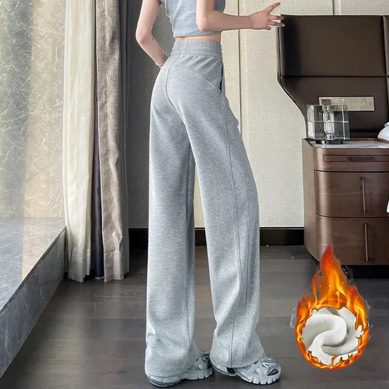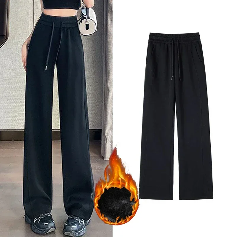 Winter Female Chic High Waist Straight Leg Thermal Pants Women Plush Casual Baggy Trousers Girls Snow Warm Fleece Pants