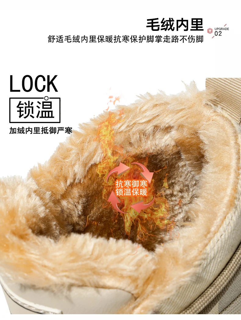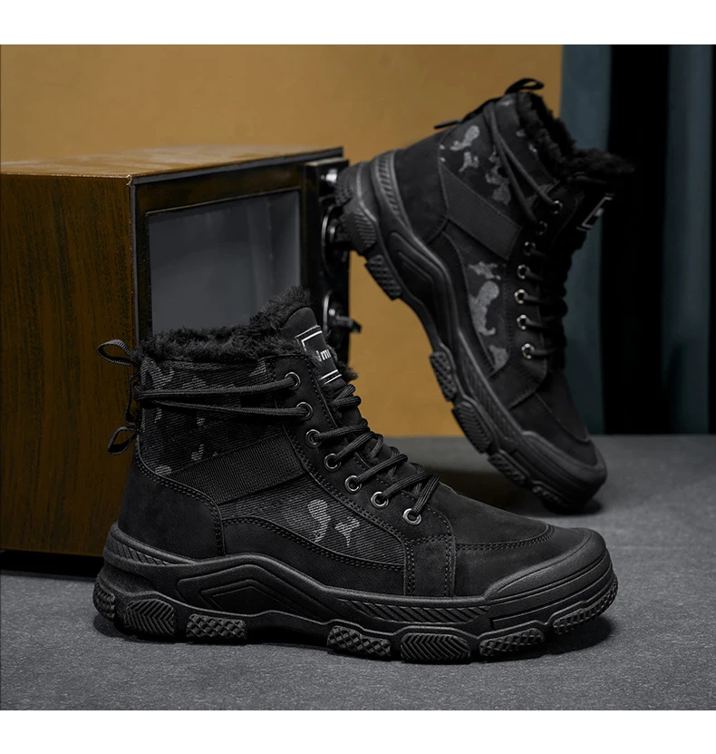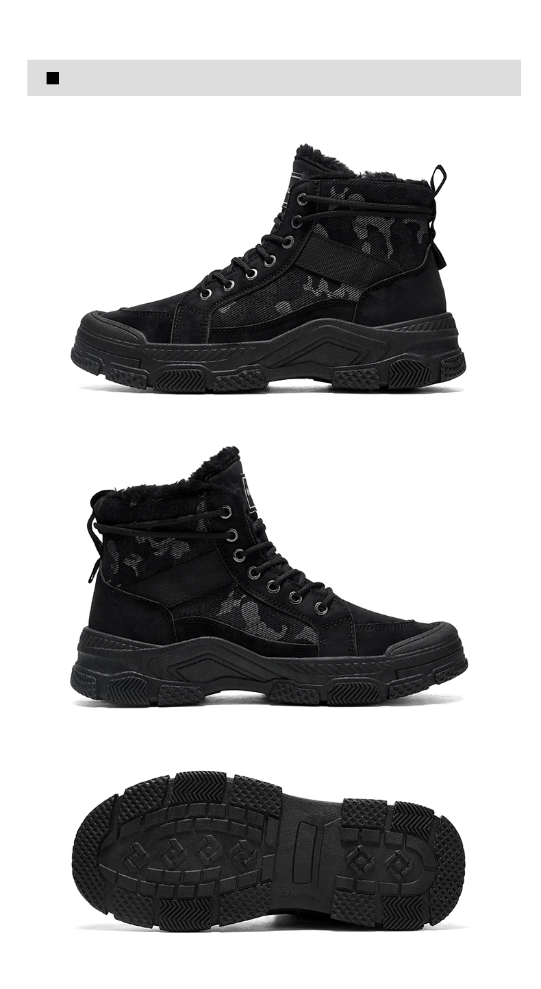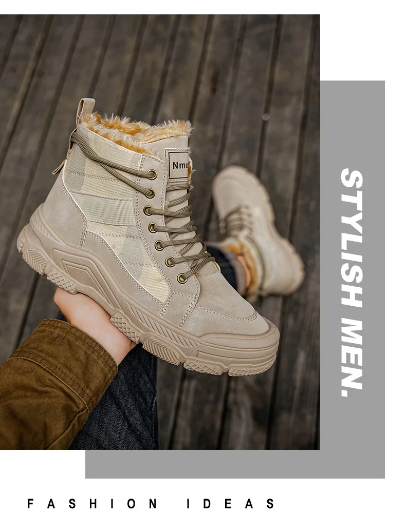 Winter Fleece Warm High-top Men's Shoes Trendy Casual Outdoor Solid Color Mid-top Fashionable Round Toe Plus-size Snow Boots