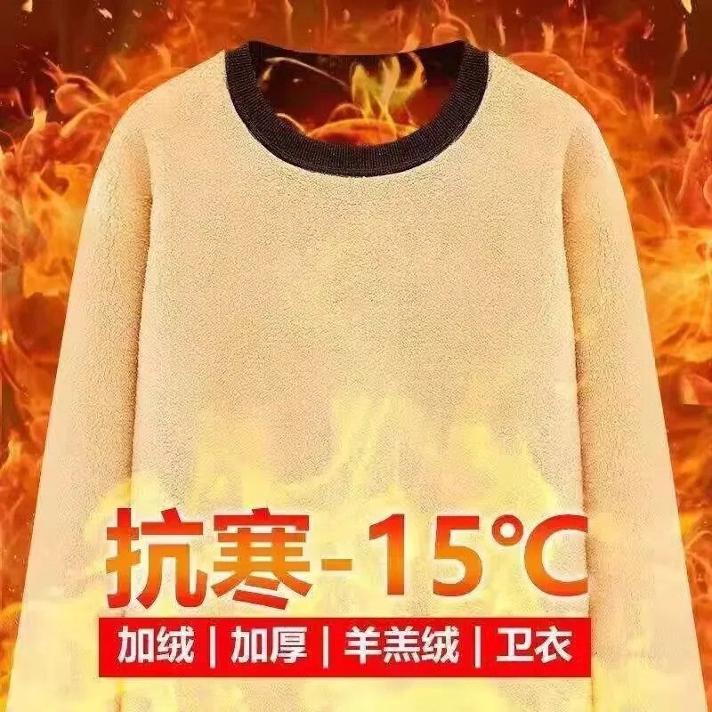 Winter Men Fleece Sweatshirts Keep Warm Underwear Casual Solid Color Pullover Lambswool O-neck Thickened Thermal Underwear Tops