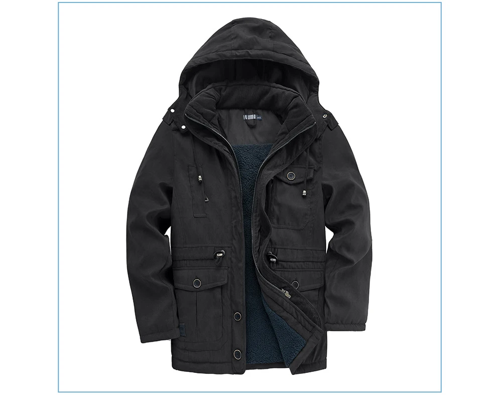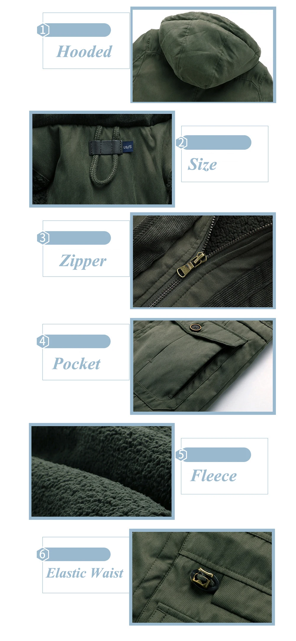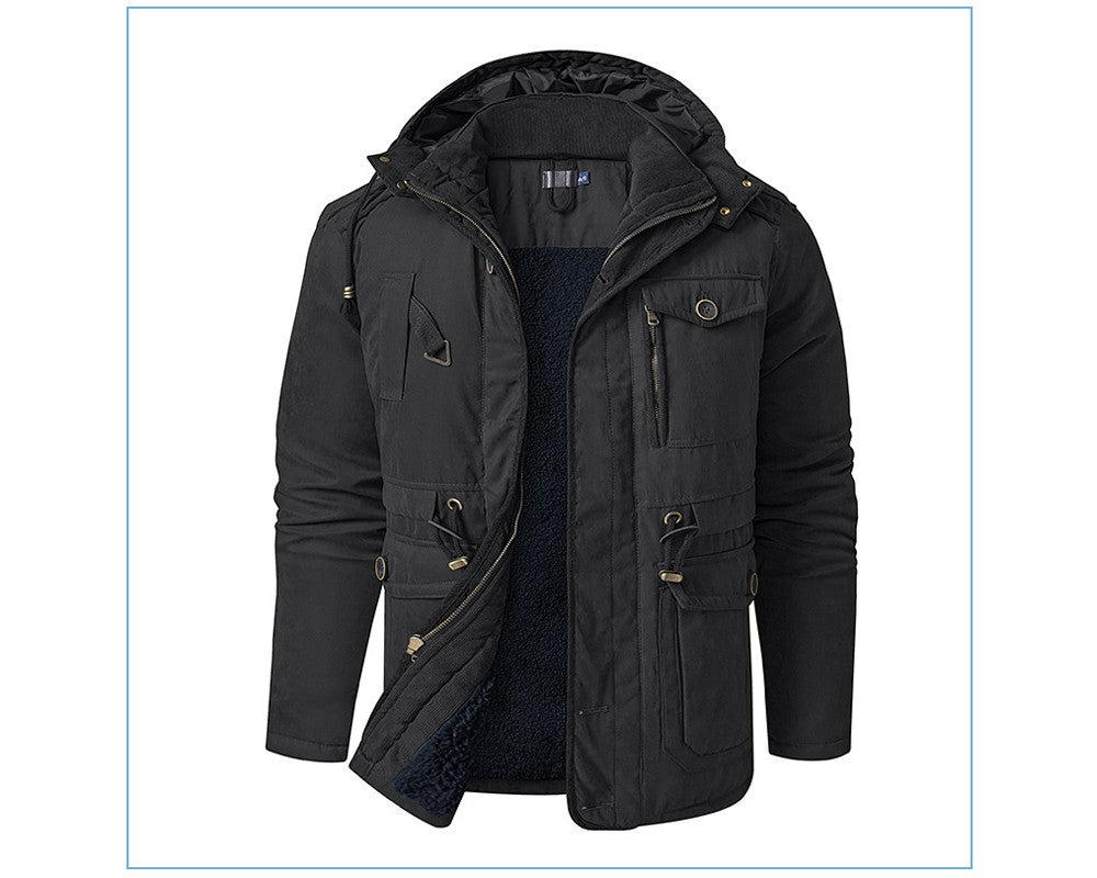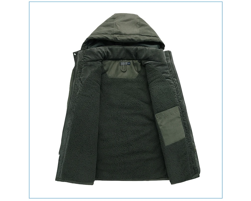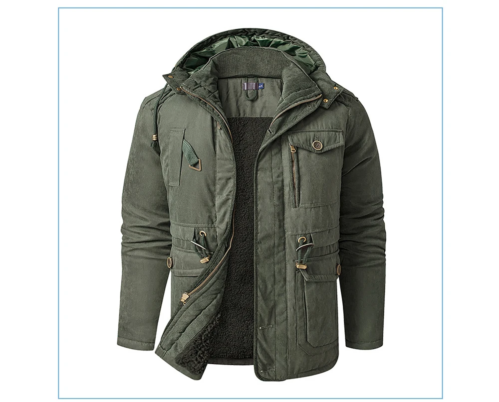 Winter Mens Fleece Warm Jackets Fashion Men Thicken Thermal Tactical Hooded Coats Men Outdoor Multi-pocket Windbreaker Jacket