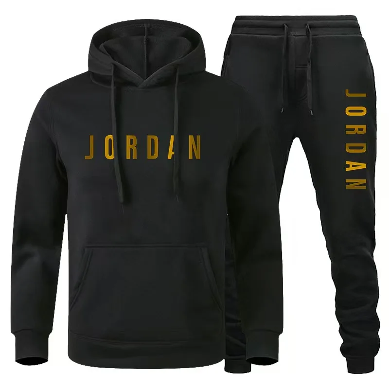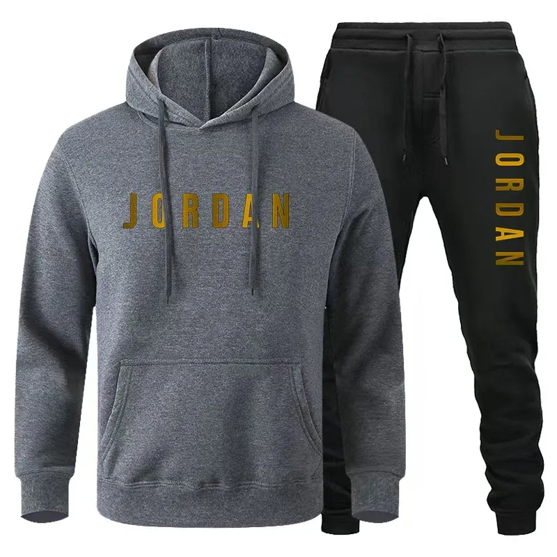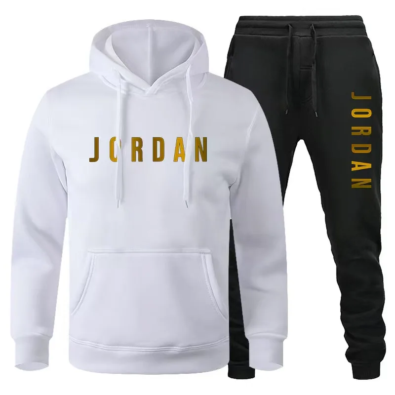 Winter men's suit, wool-lined cap sweatshirt + casual jogging pants, casual set, cuff top, fashionable sportswear