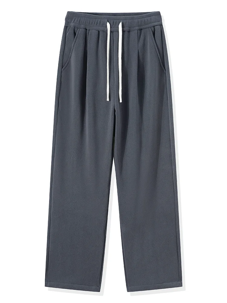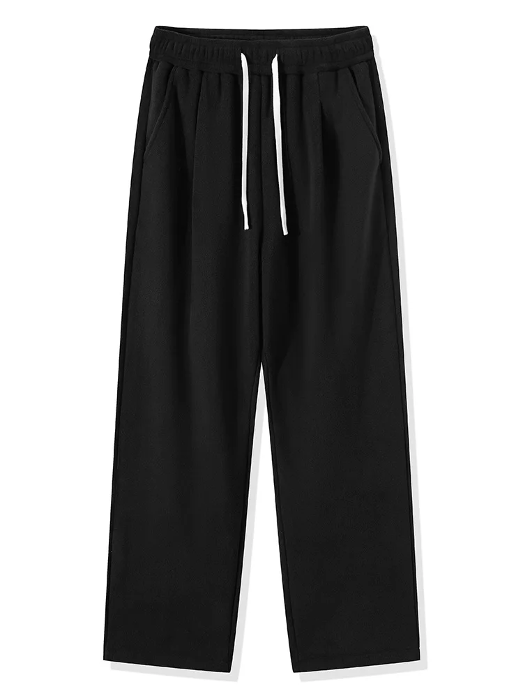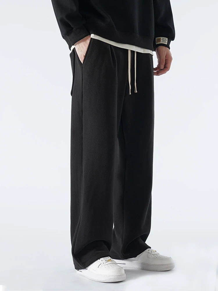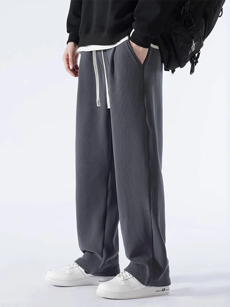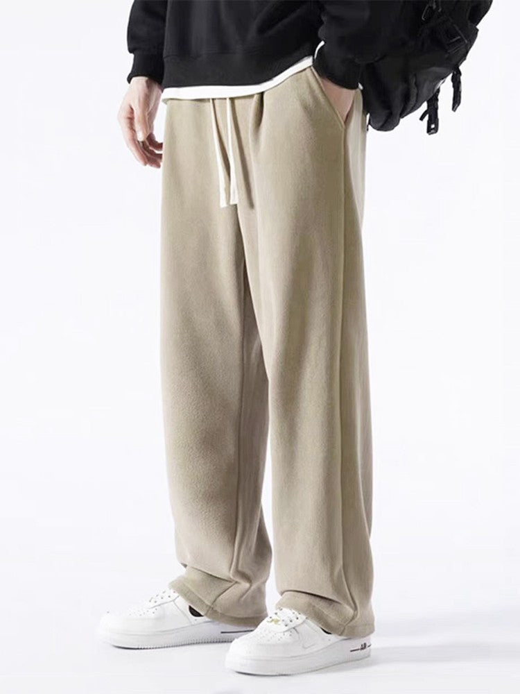 Winter Men's Sweatpants Korean Fashion Thick Warm Fleece Wide Leg Straight Loose Track Pants Male Casual Thermal Velvet Trousers