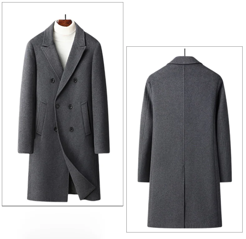 Winter Men's Woolen Coat Thicken Warm Trench Coat Men Wool Casual Double Fashion Breasted Long Overcoat Men