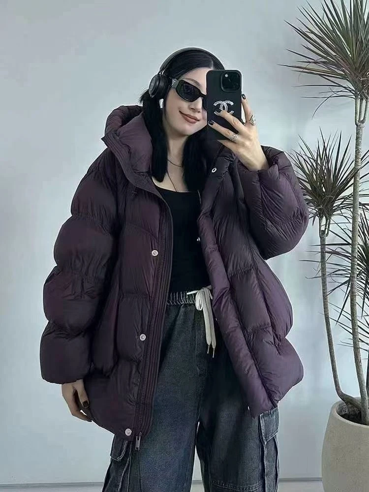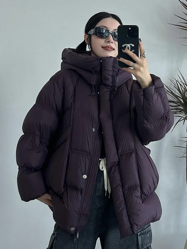 Winter New Puff Down Jacket Female Thickened White Duck Down Warm Coat Women Medium-length Loose Solid Thick Hooded Overcoat