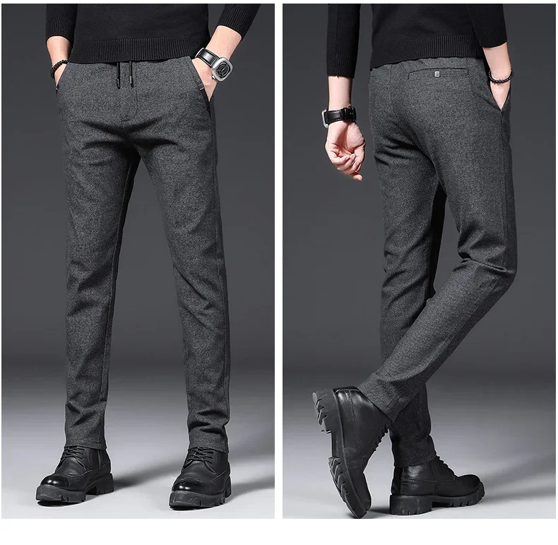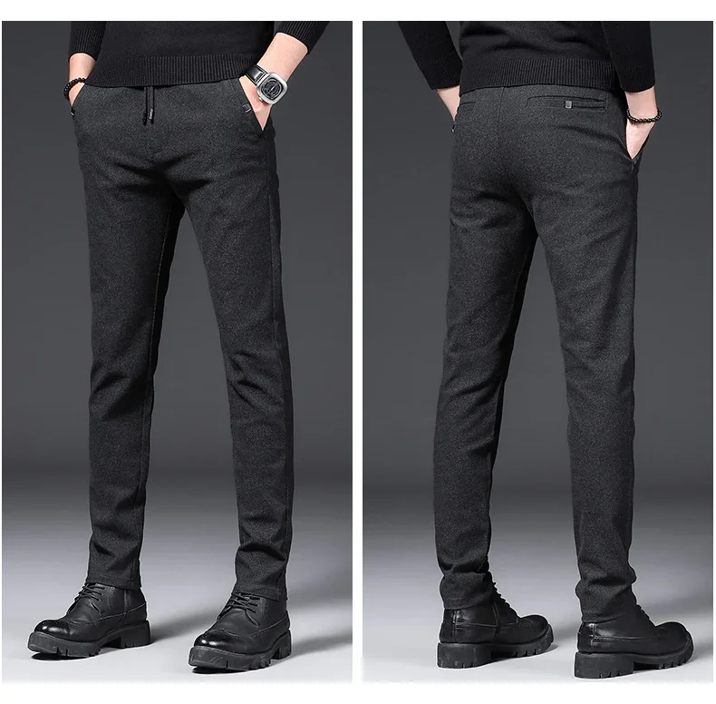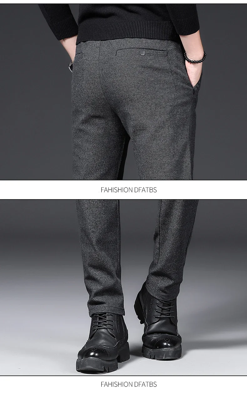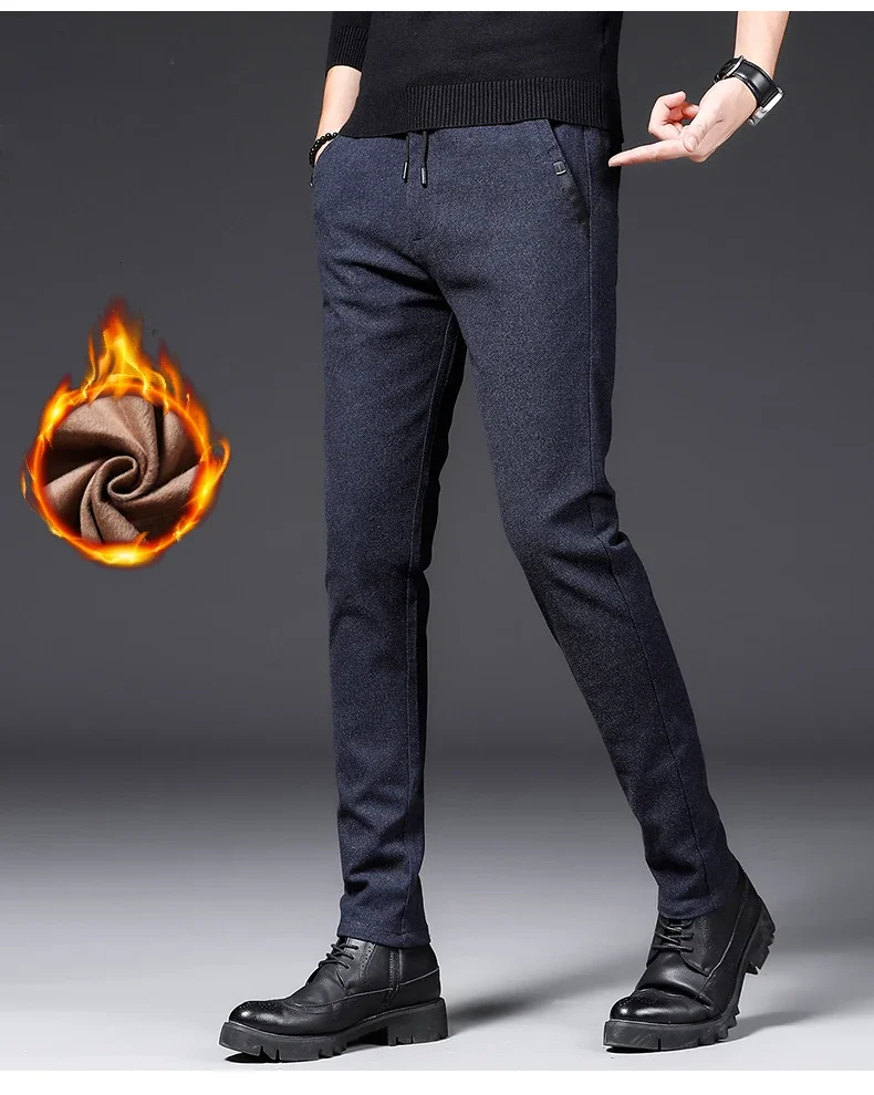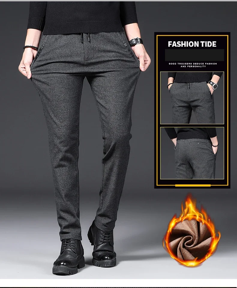 Winter Plush Trousers Men Business Fleece Pants Fashion Warm Drawstring Velvet Thick Casual Stretch Male Clothes 28-29