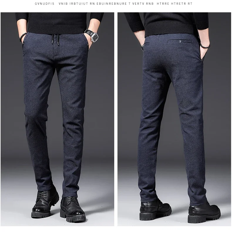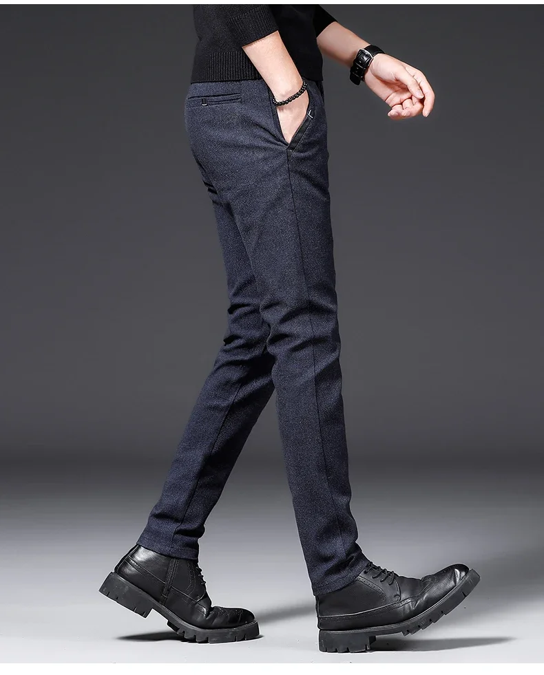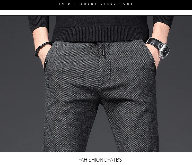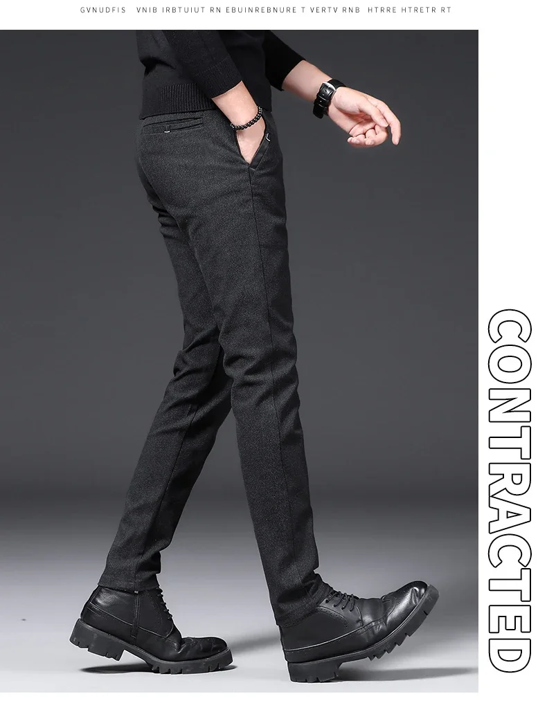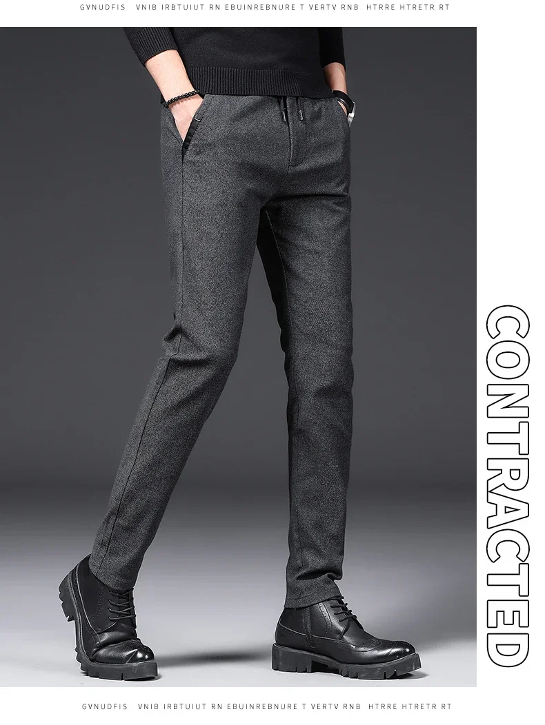 Winter Plush Trousers Men Business Fleece Pants Fashion Warm Drawstring Velvet Thick Casual Stretch Male Clothes 28-29