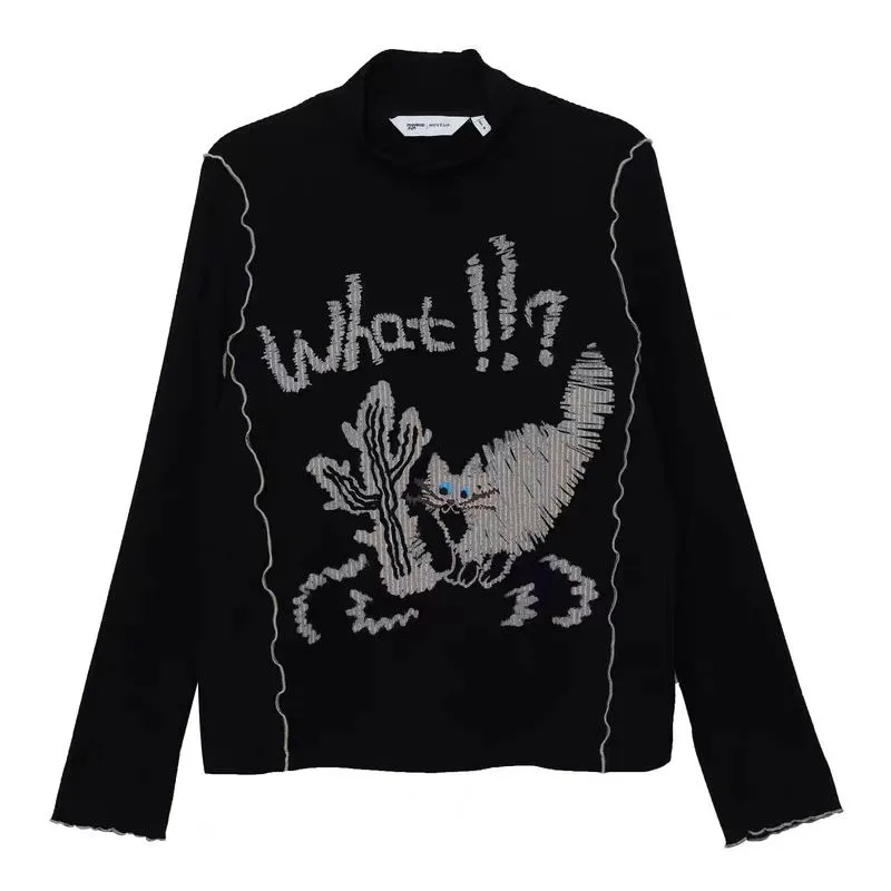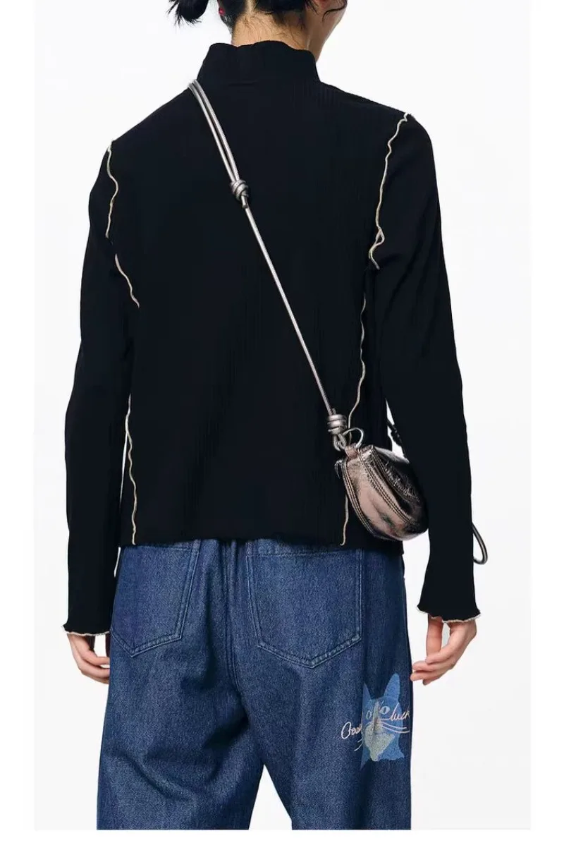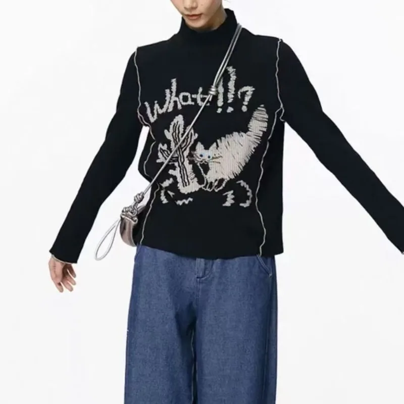 Winter Print T-Shirt Women 2025 - High Neck Cropped Long Sleeve Top, Stretchy Layering Basic Tee, Y2K Bodycon Casual Blouse, Ela