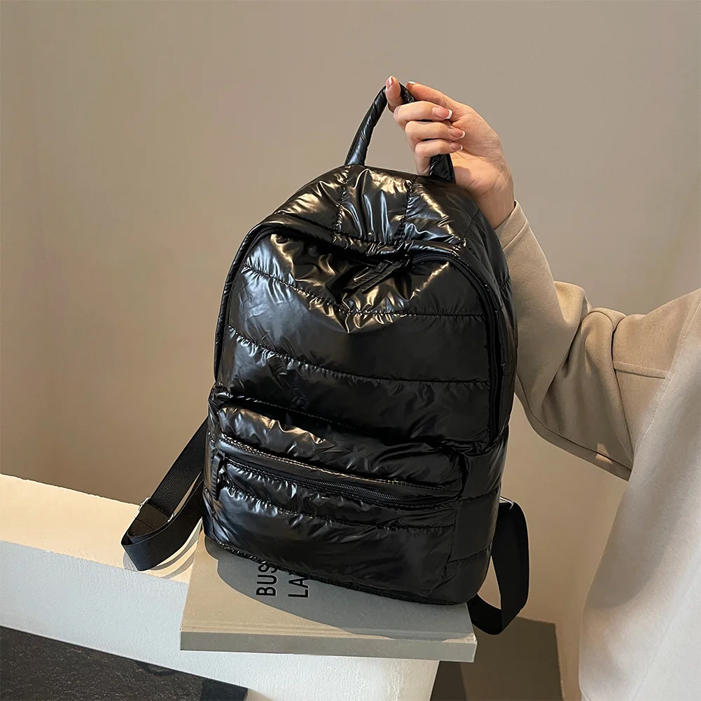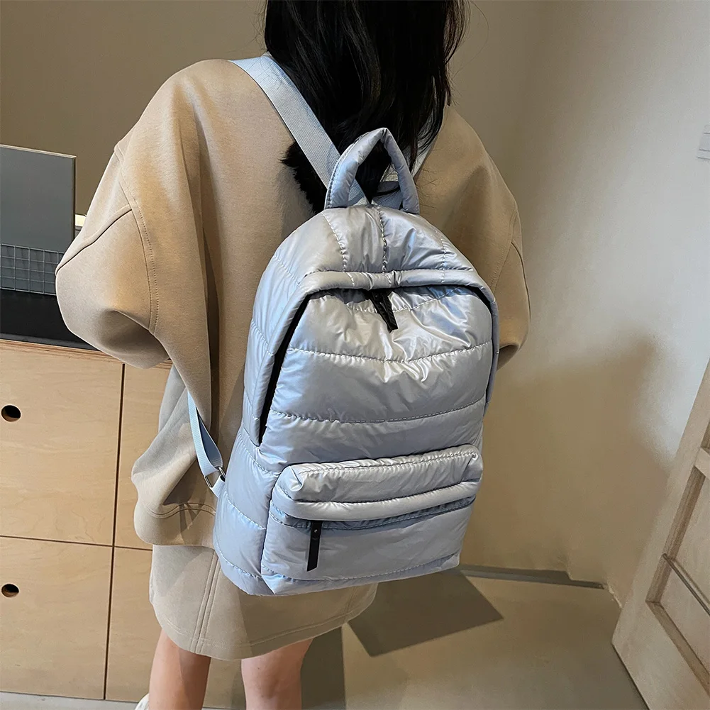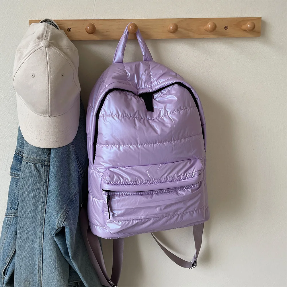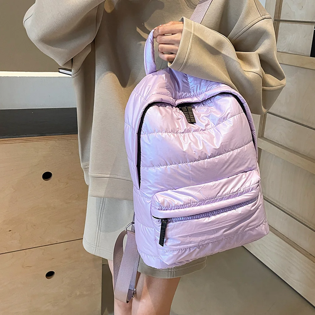 Winter Puffer Students School Bags Large Capacity Down Padded Backpack Solid Color Casual Bookbag Adjustable Strap Teen Rucksack