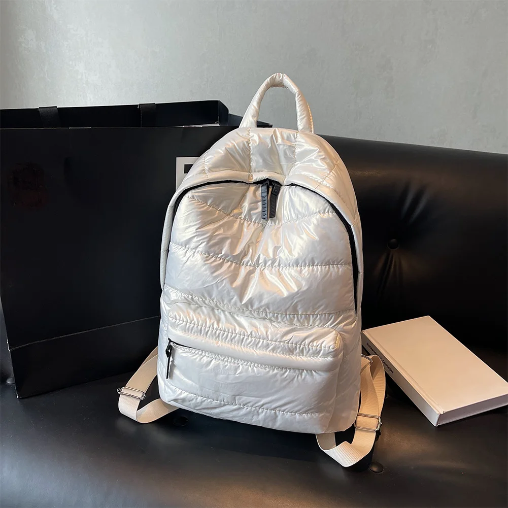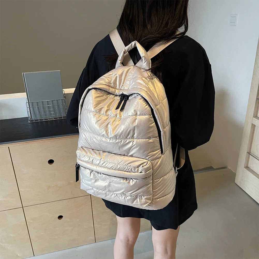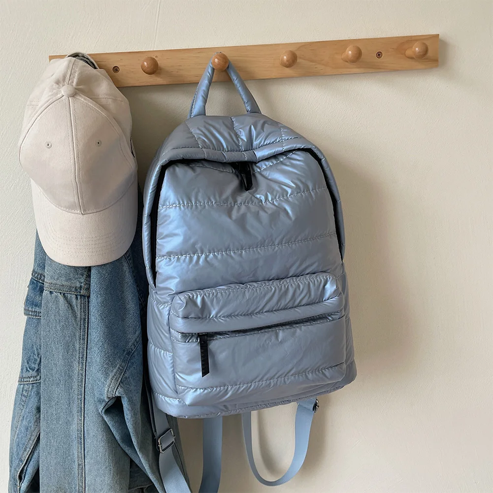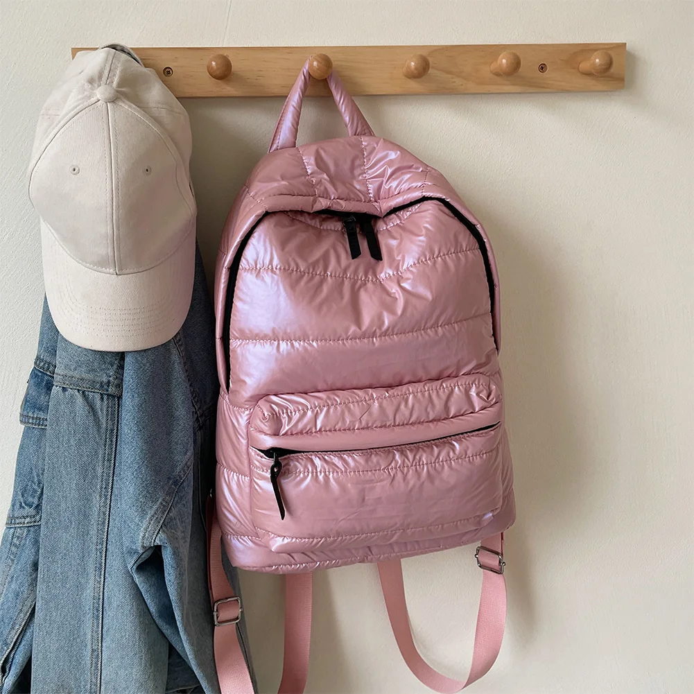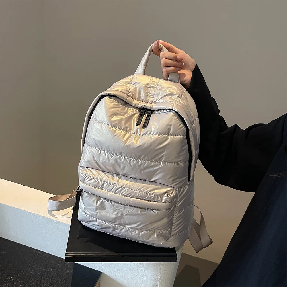 Winter Puffer Students School Bags Large Capacity Down Padded Backpack Solid Color Casual Bookbag Adjustable Strap Teen Rucksack