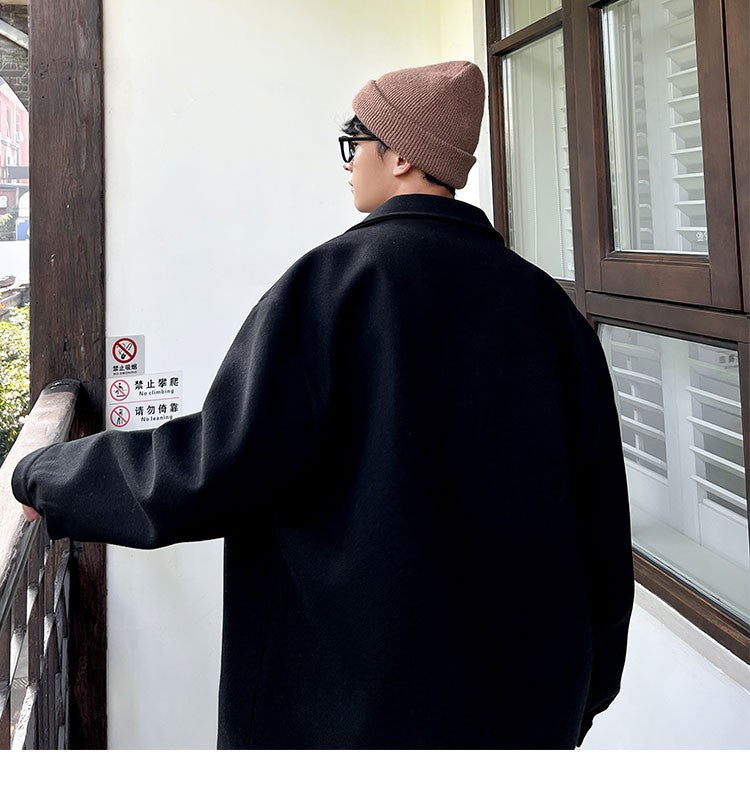 Winter Short Woolen Coat Men Warm Retro Thickened Woolen Jacket Men Streetwear Korean Loose Woolen Coat Mens Oversized Overcoat