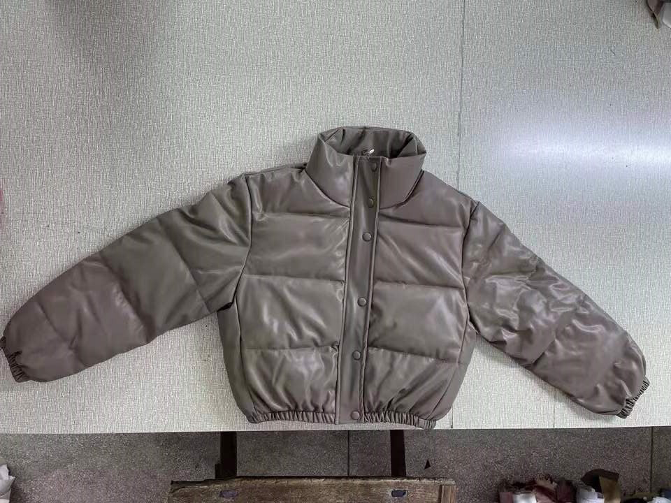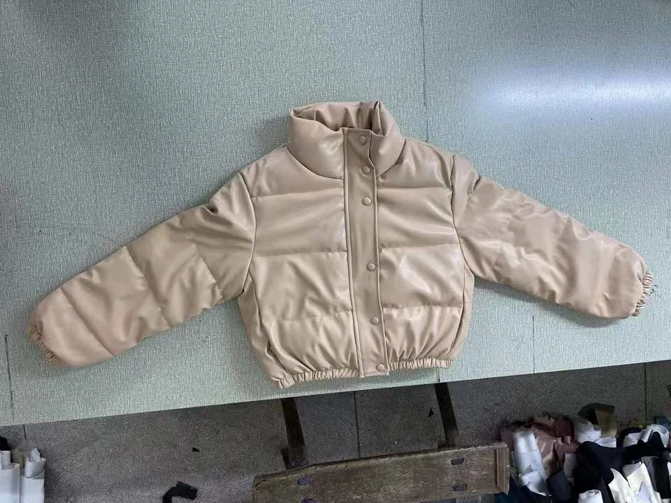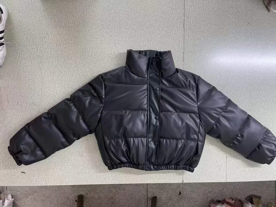 Winter Thick Warm Cropped Puffer Jacket Women Black PU Leather Parkas Elegant Zipper Coat Cotton Padded Punk Outwear 2023