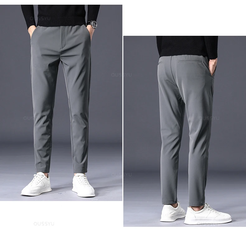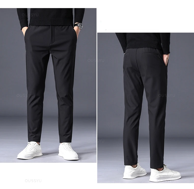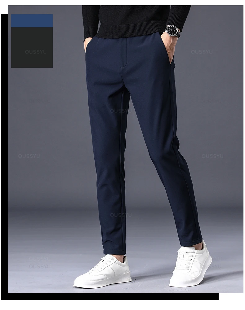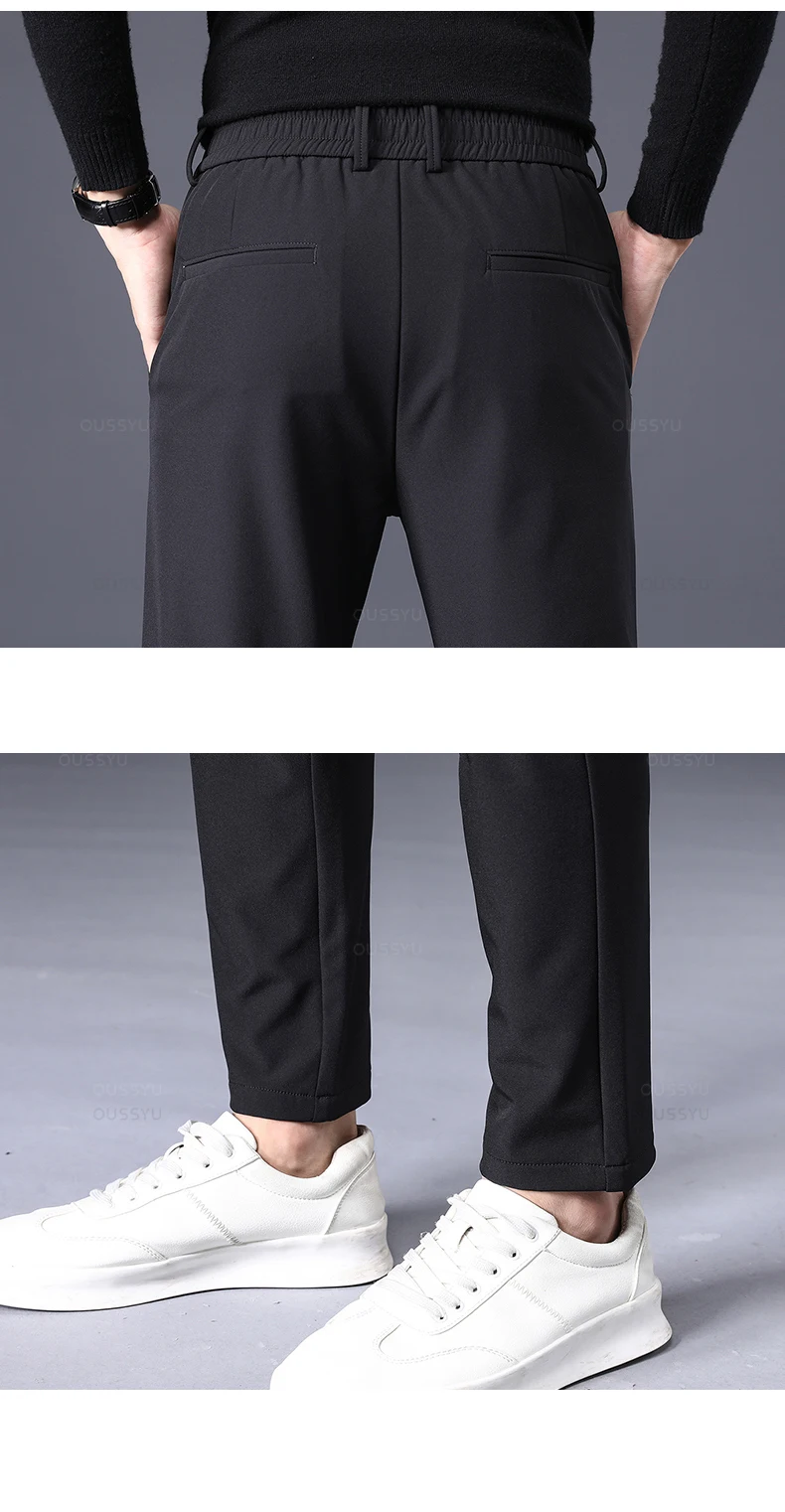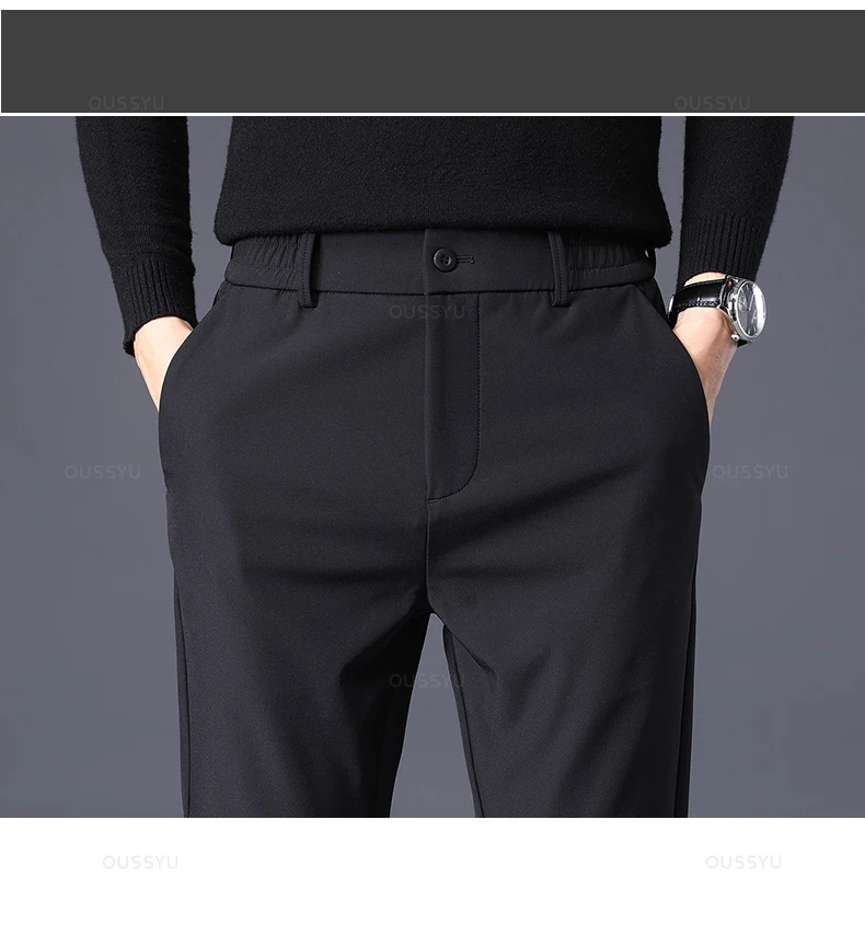 Winter Warm Men's Fleece Pants Thick Business Stretch Slim Fit Elastic Waist Jogger Korean Classic Black Gray Blue Trousers Male