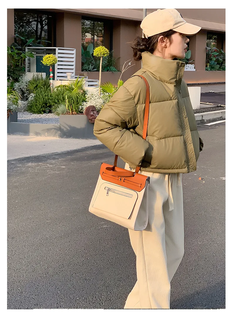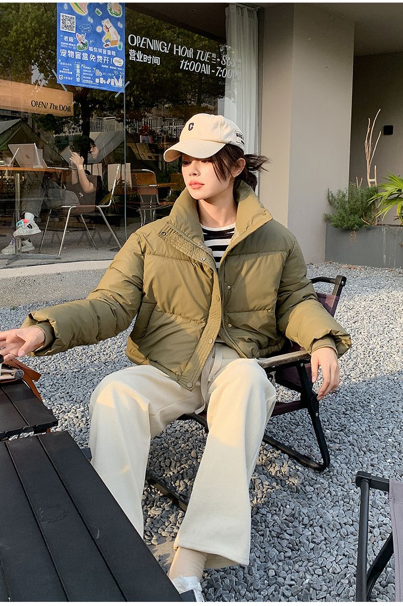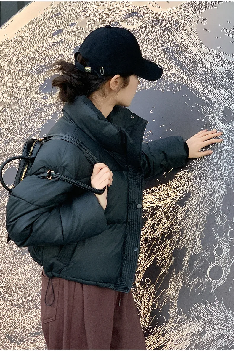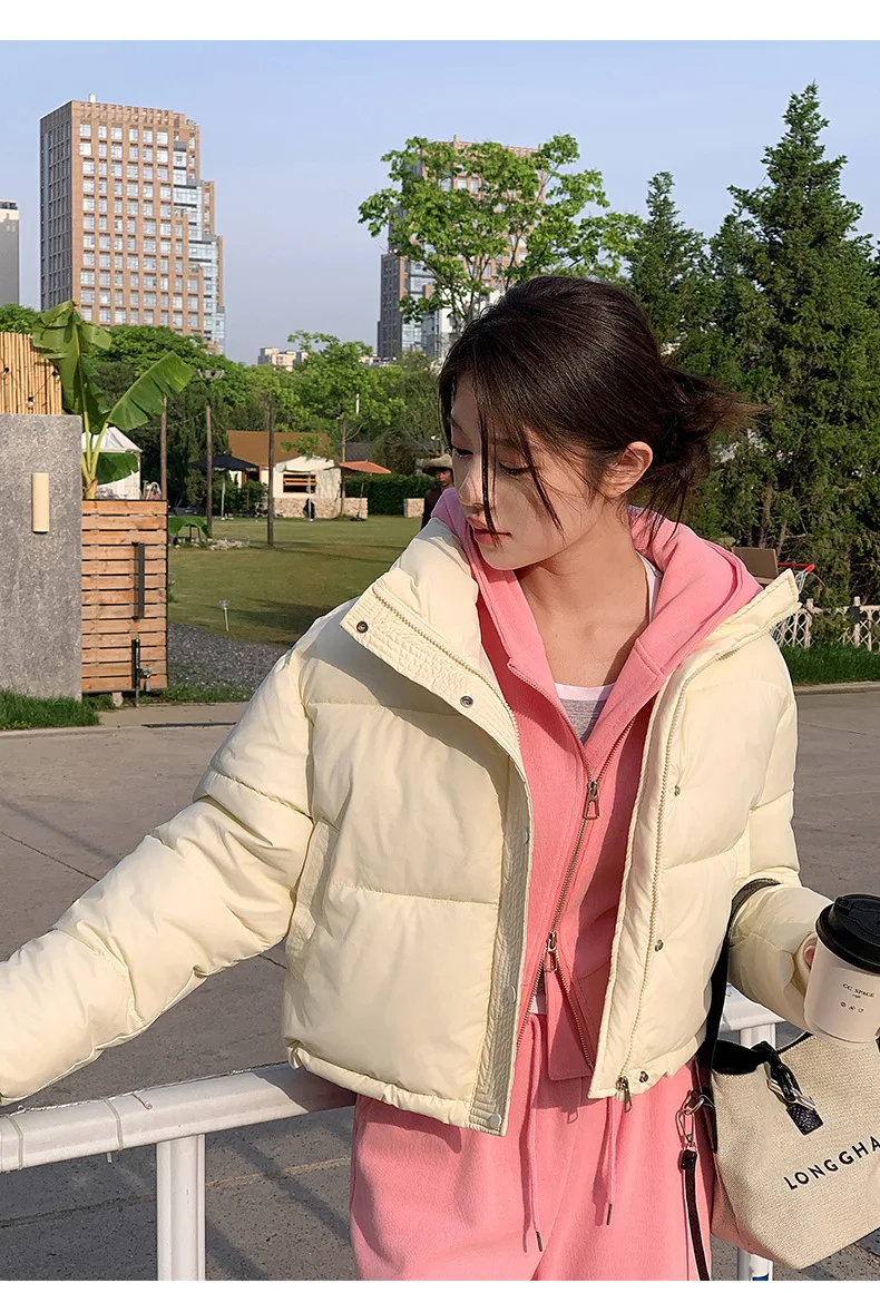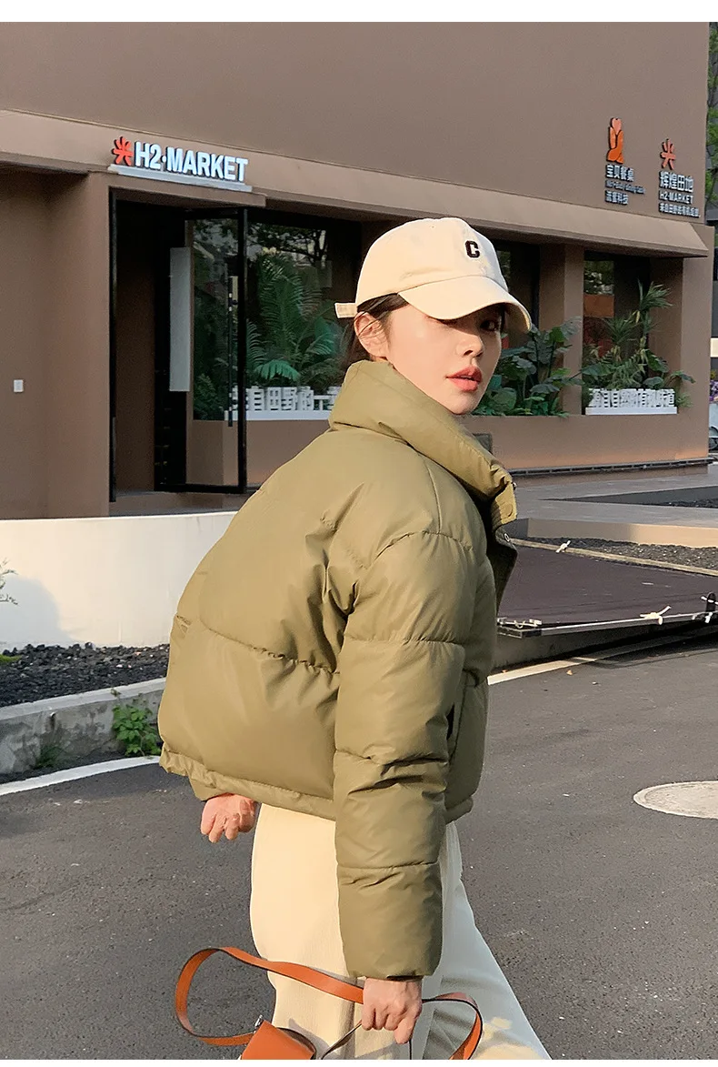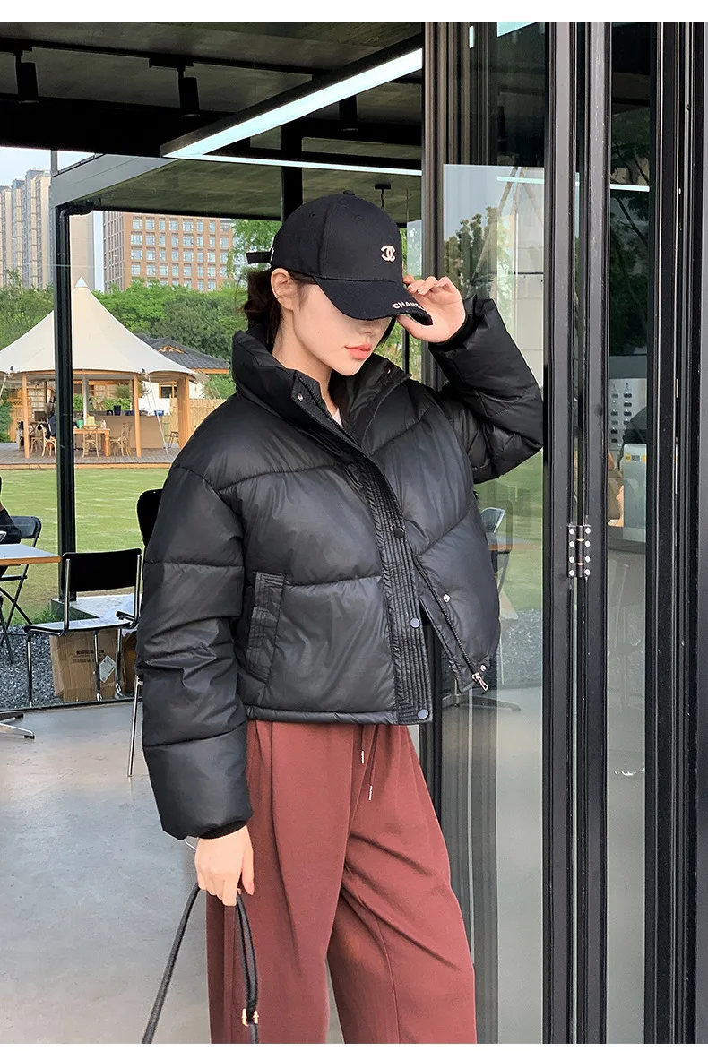 Winter Women Clothes Cropped Jackets Parkas Warm Stand Collar Cold Coat Zipper Puffer Jacket Korean Fashion Cotton-padded Jacket