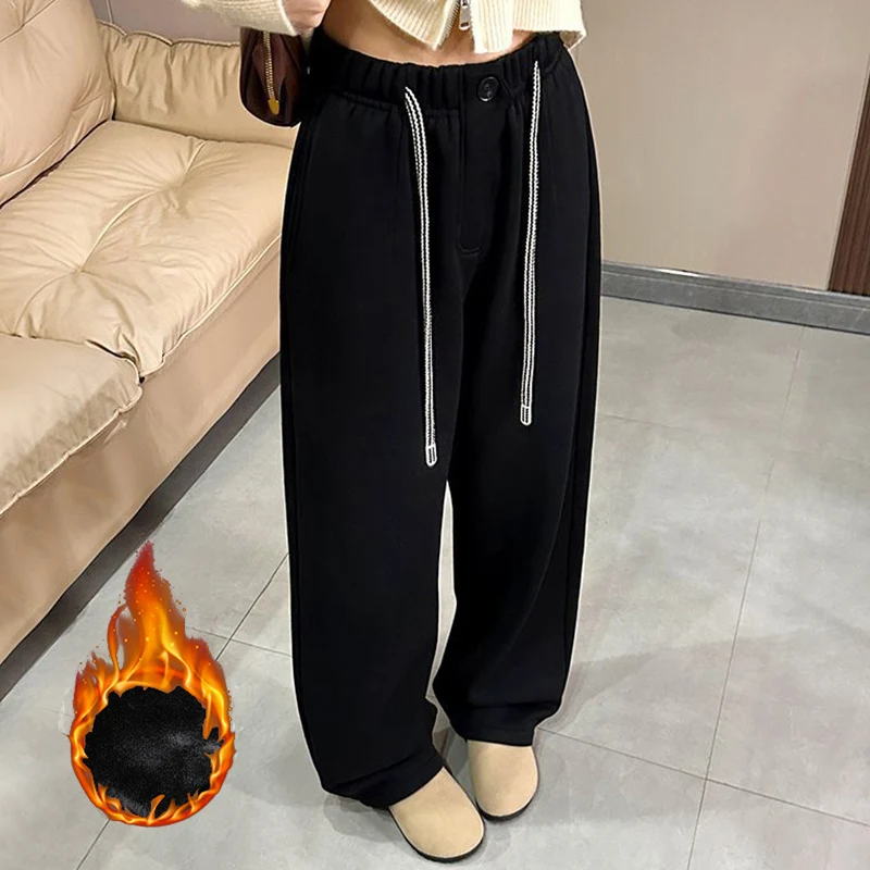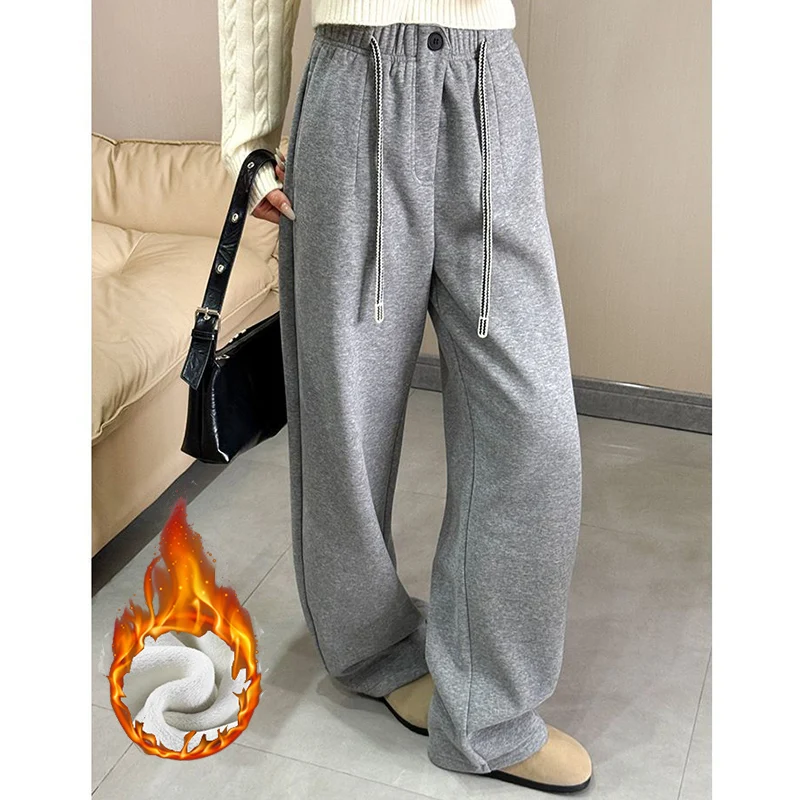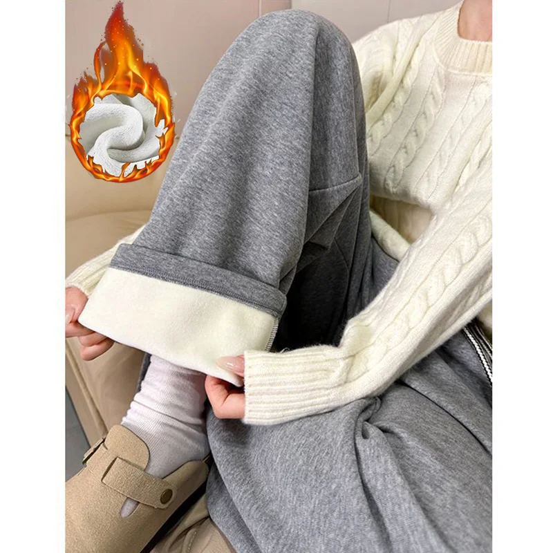 Winter Women Streetwear Baggy Fleece Pants Lady High Waist Snow Warm Plush Trousers Girls Slim Fit Daily Thermal Pants
