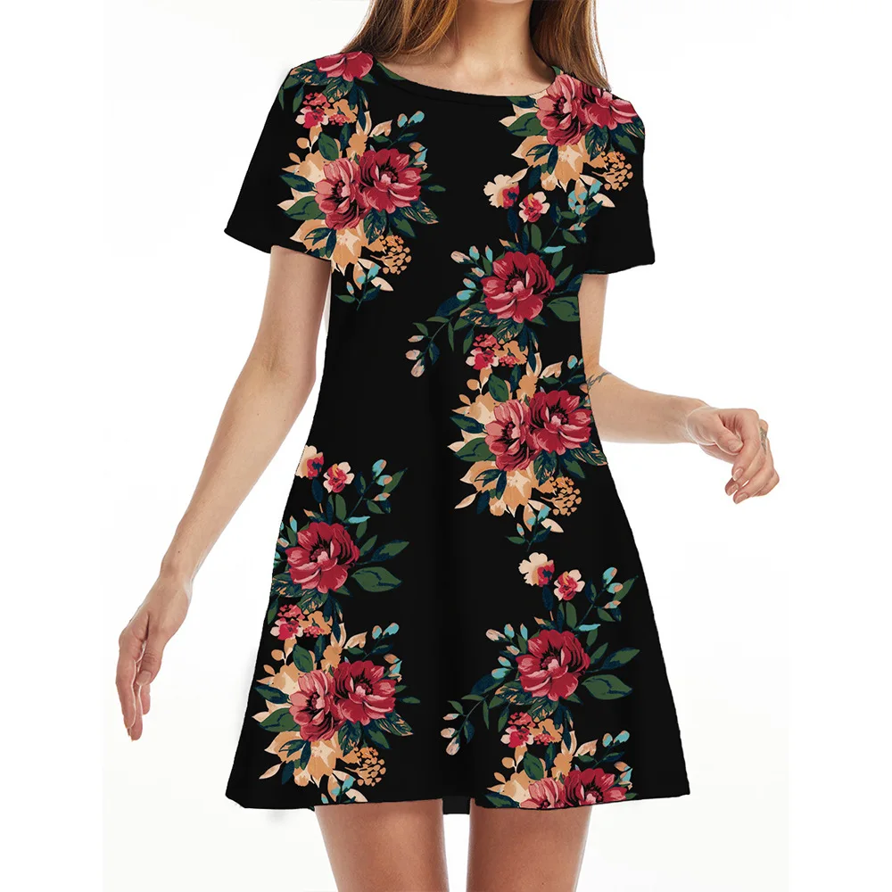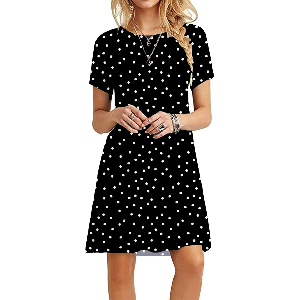 Women Casual Short Sleeve T Shirt Dress Vintage O Neck Print Loose Mini Dress Elegant Simple Mini Dress Streetwear Sundress