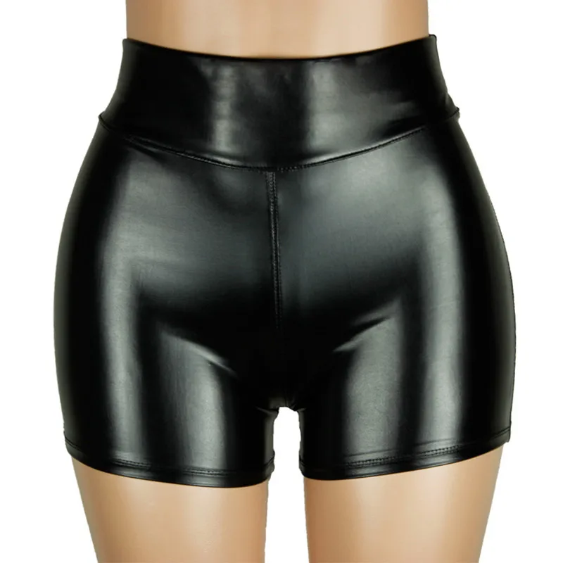 Women Faux Leather Shorts High Waist Push Up Black Short Joggers Sports Fitness Womens Sexy Slim Shorts Spodenki Damskie New