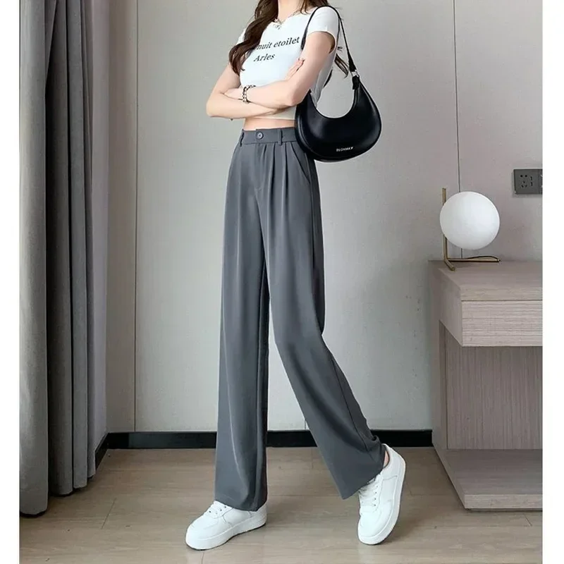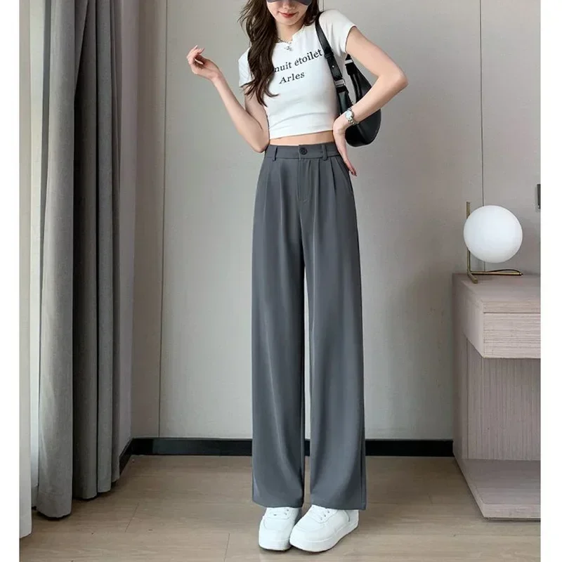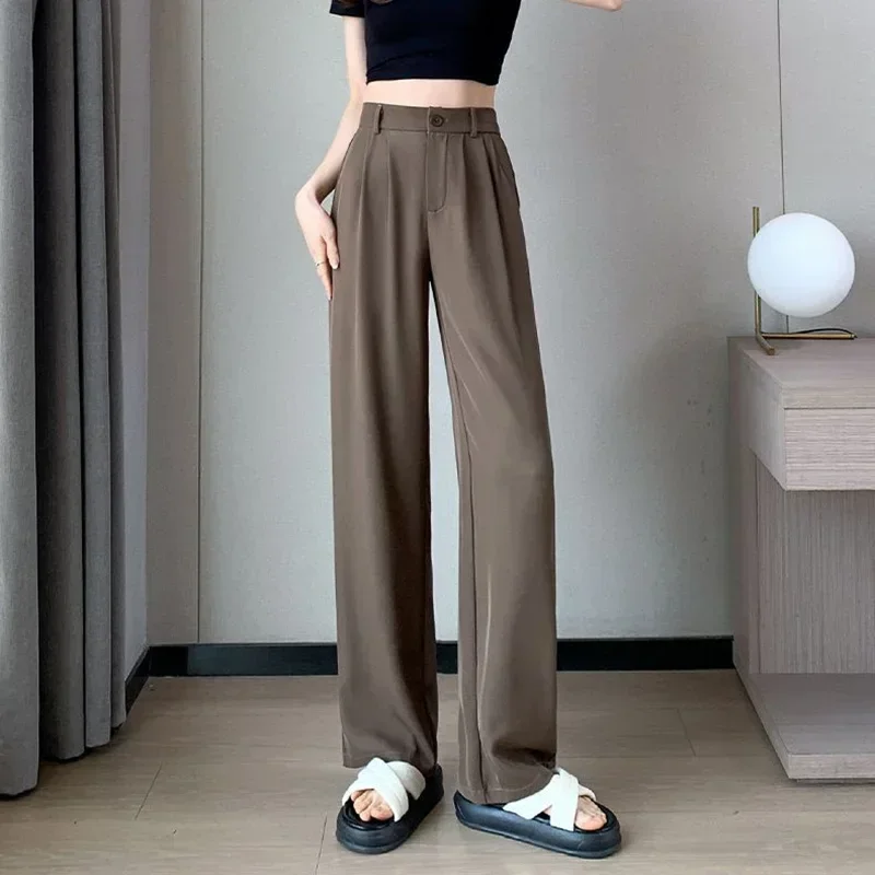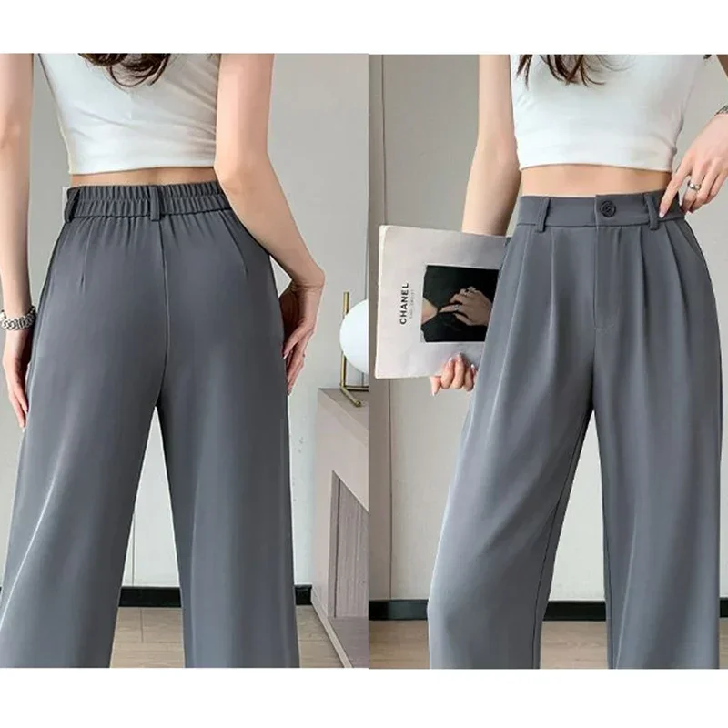 Women Full Length Pants Lady Baggy High Waist Wide Leg Solid Color Trousers Lady Straight Leg Mom Classic Office Pants Slacks