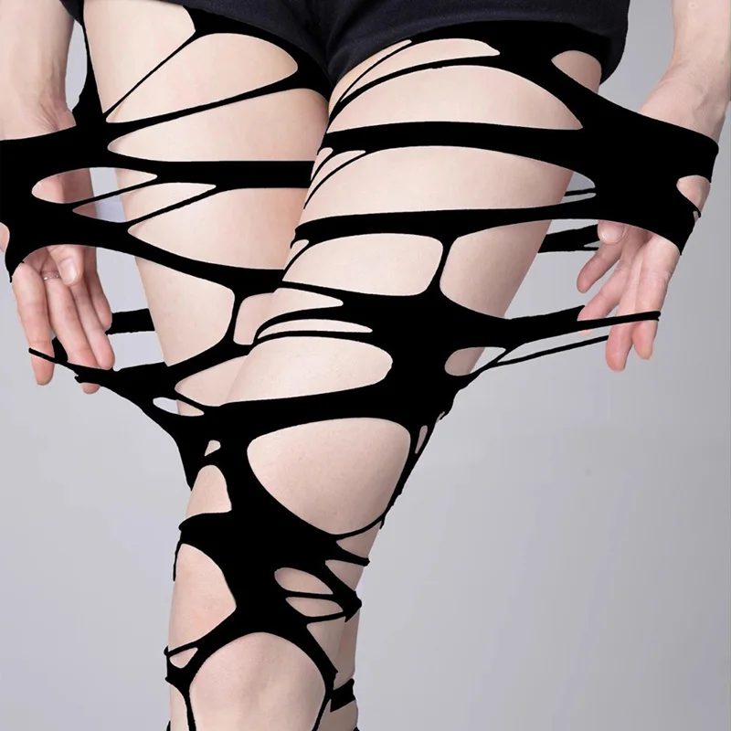 Women Gothic Punk Hollow Out Mesh Pantyhose Sexy Black Ripped Fishnet Tight Stockings Egirl Streetwear Leggings JK cropped Pants