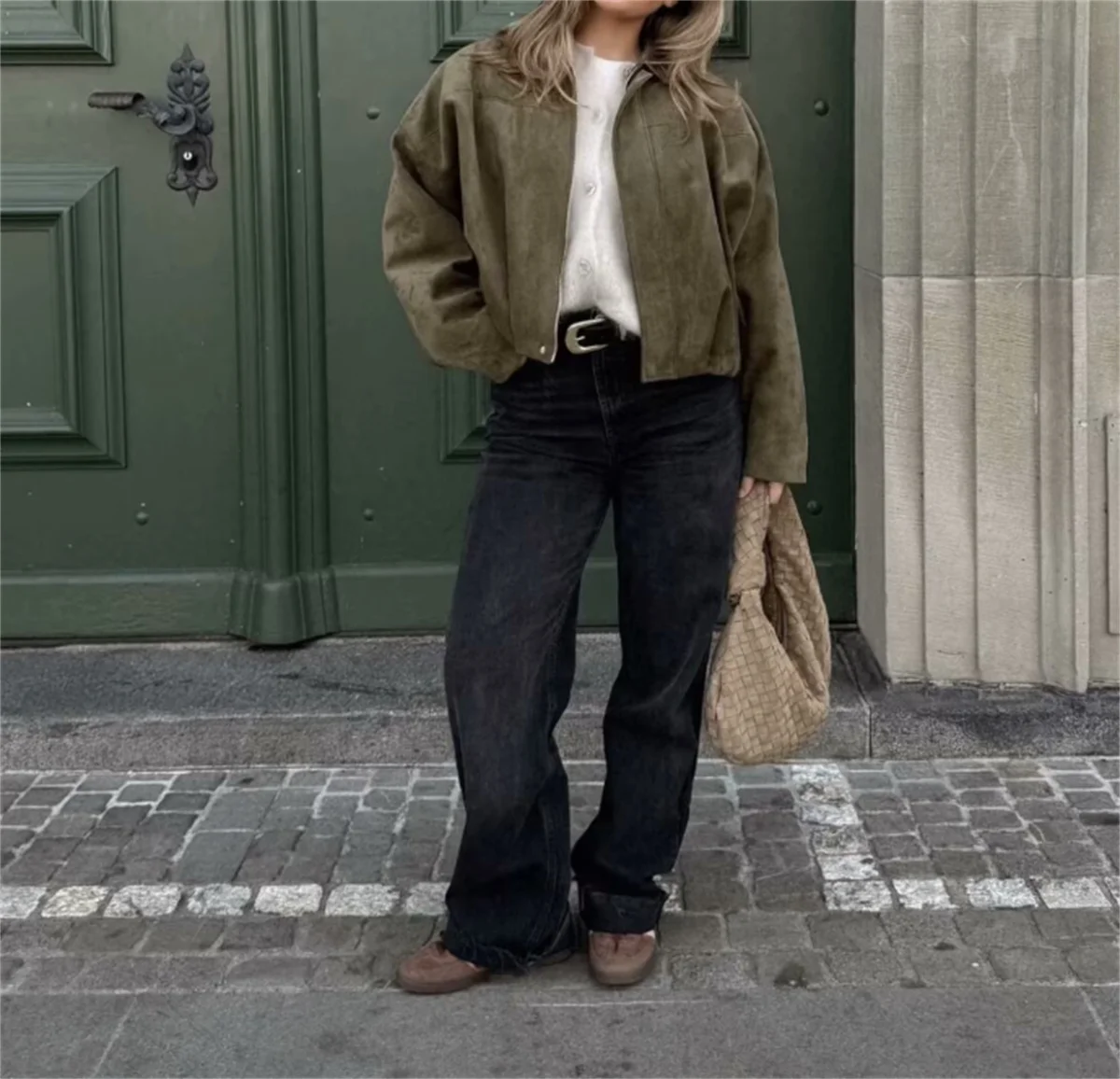 Women Lapel Zipper Solid Jacket Long Sleeve Autumn Winter Fashion Bomber Coat 2025 New In Retro Street Coats Lady Casual Jackets