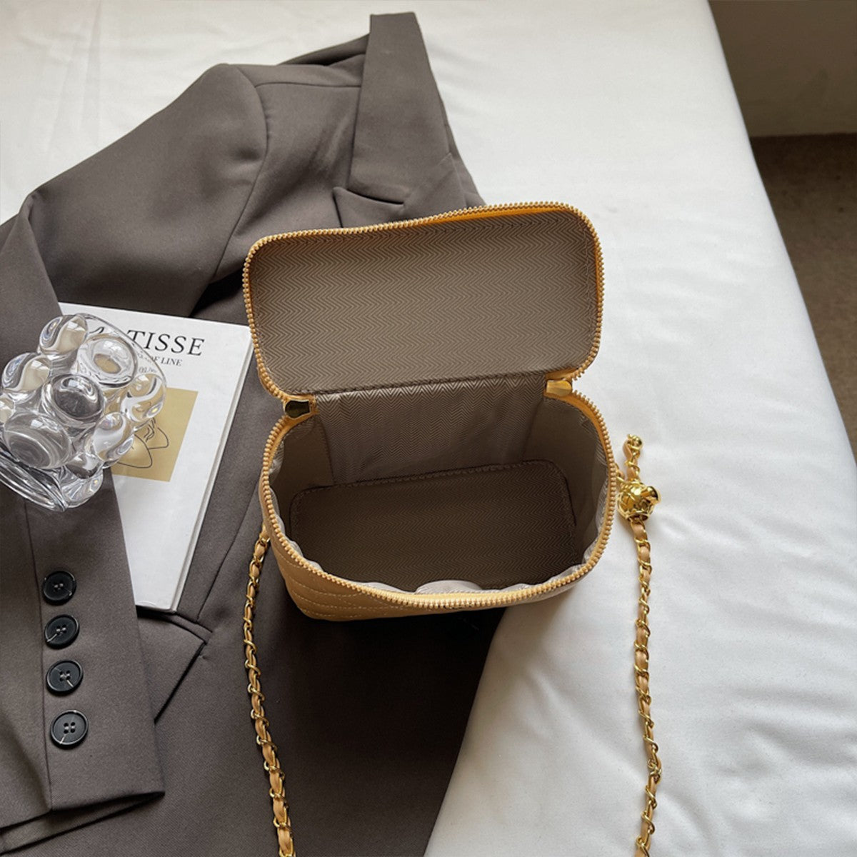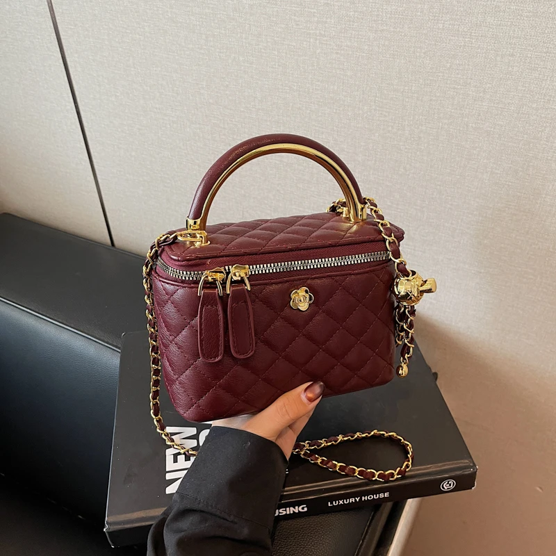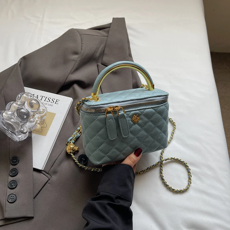 Elegant diamond quilting pattern with delicate metal flower decoration