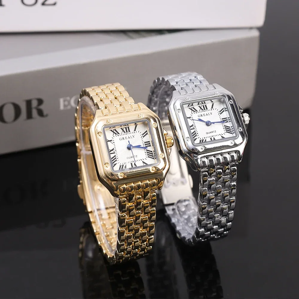 Women New Fashion Square Watches Gold Stainless Steel Strap Luxury Ladies Quartz Wristwatches Qualities Female Roman Clock Gift