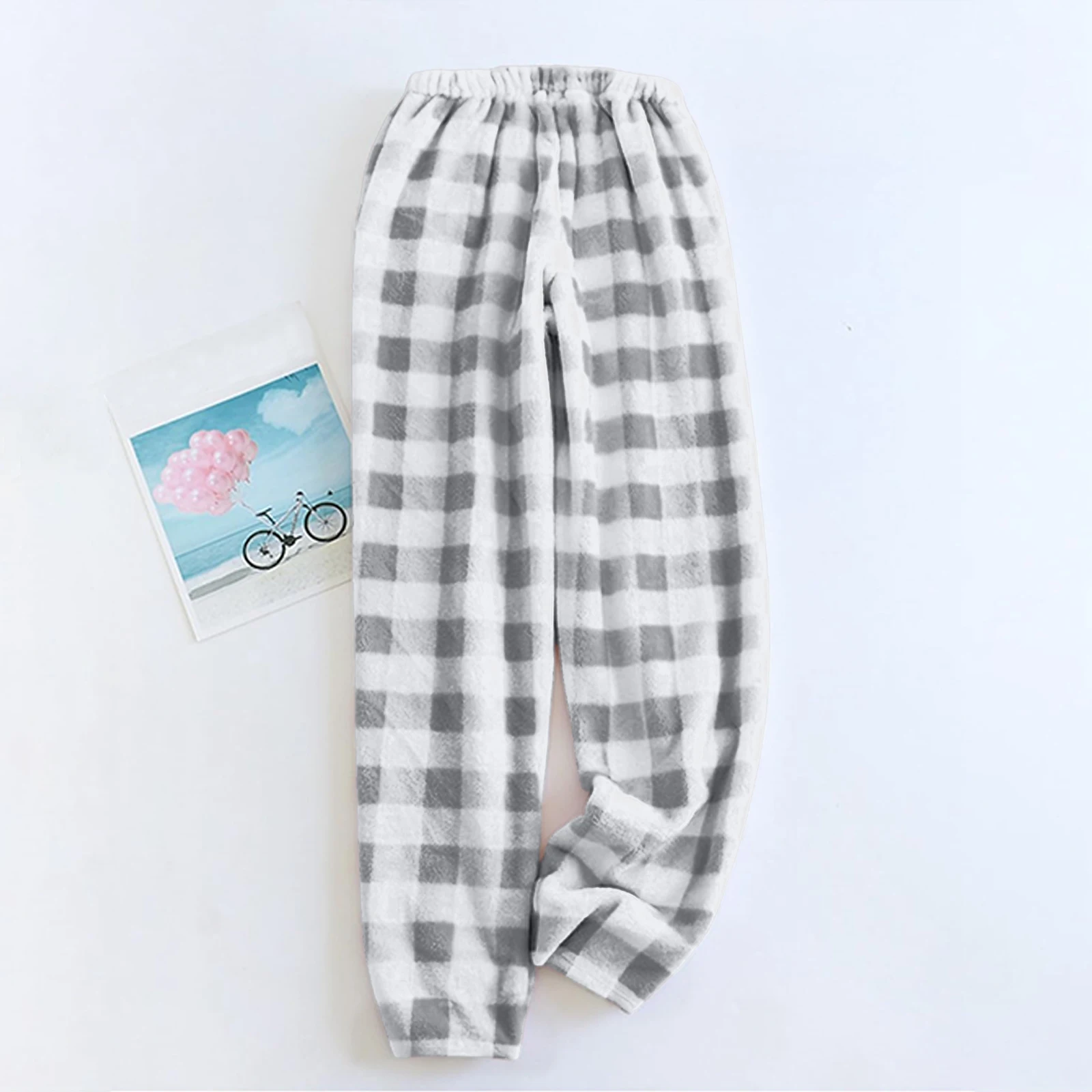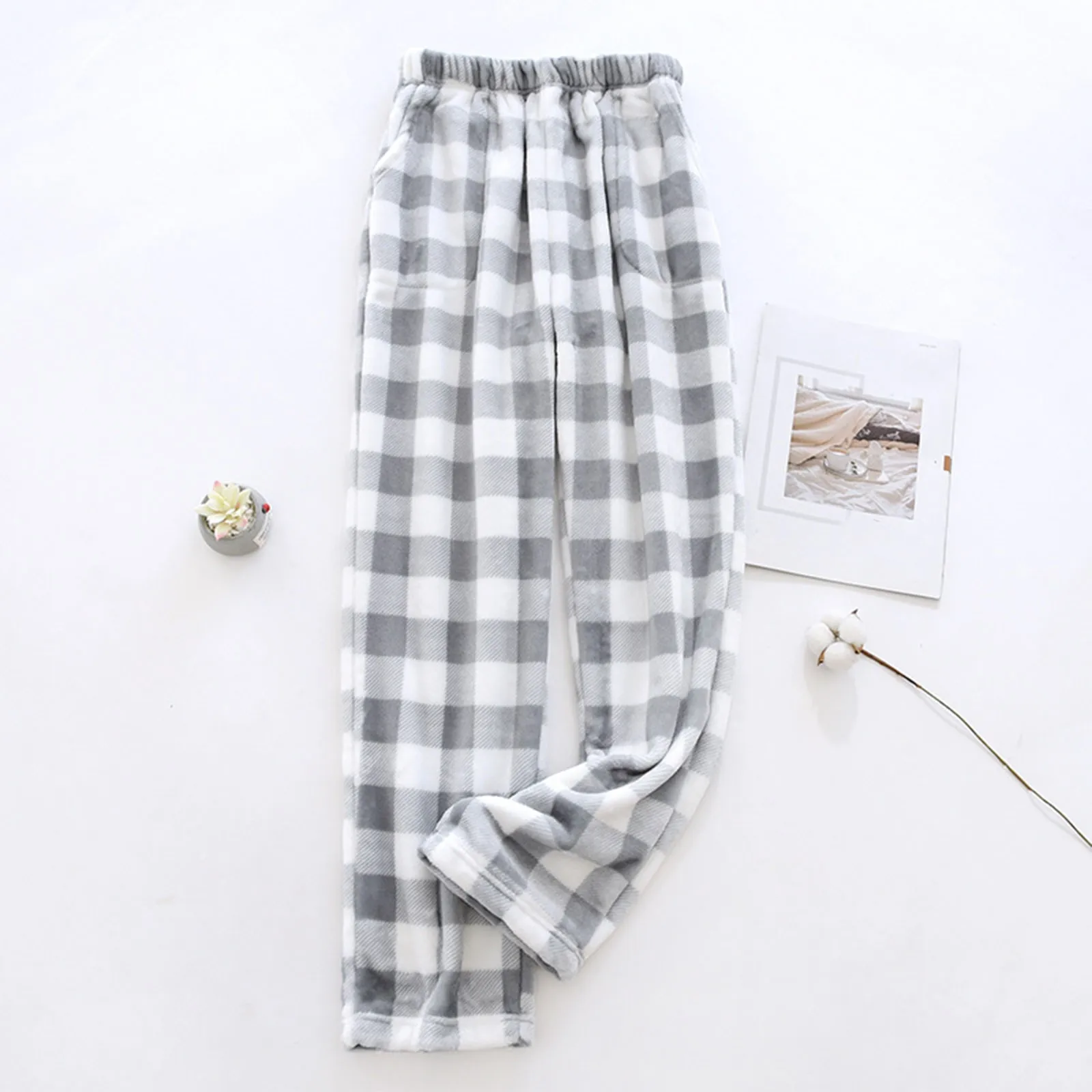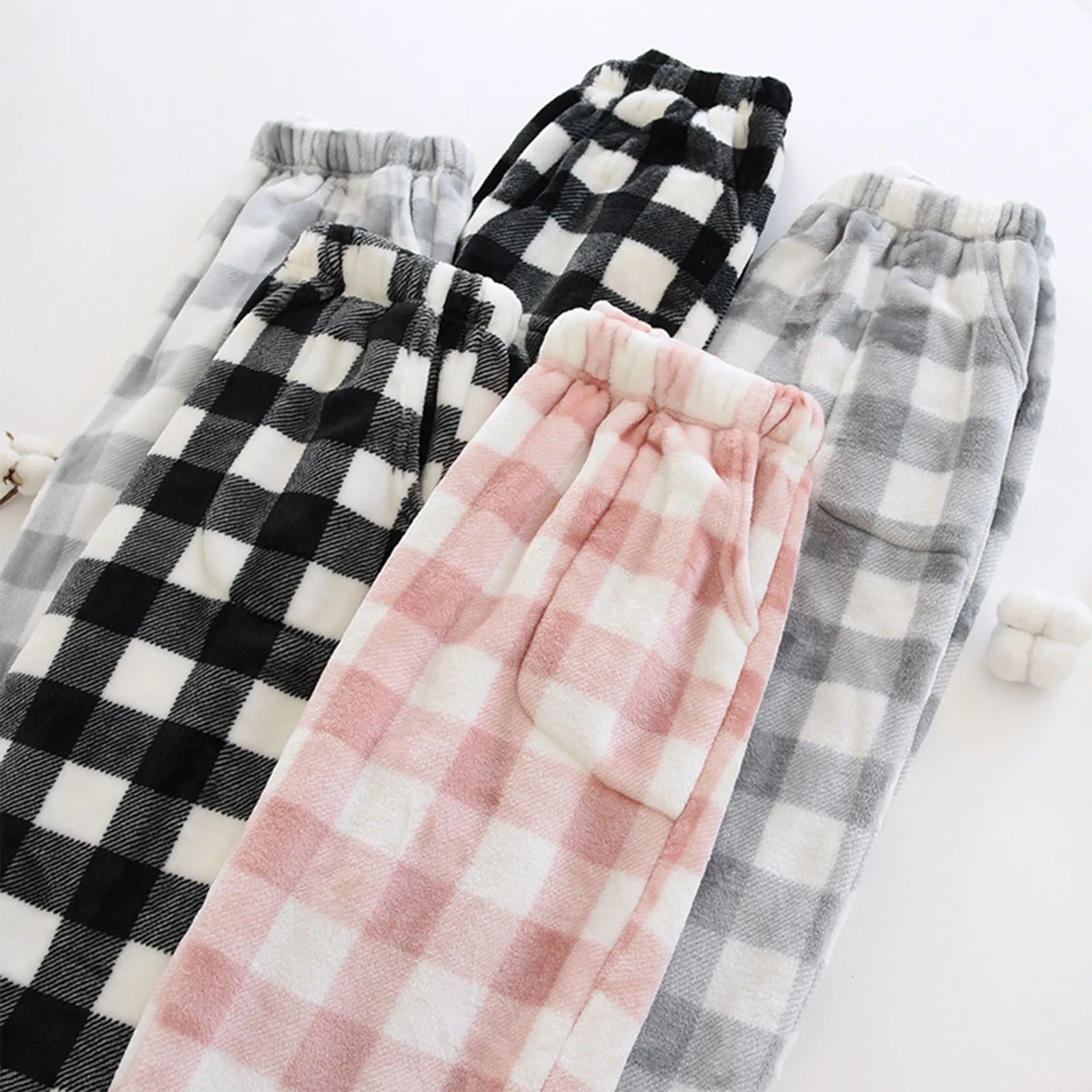 Women Pajama Pants Plush Sleep Pants Soft Elastic Waist Pajama Bottoms Plaid Pants With 2 Pockets