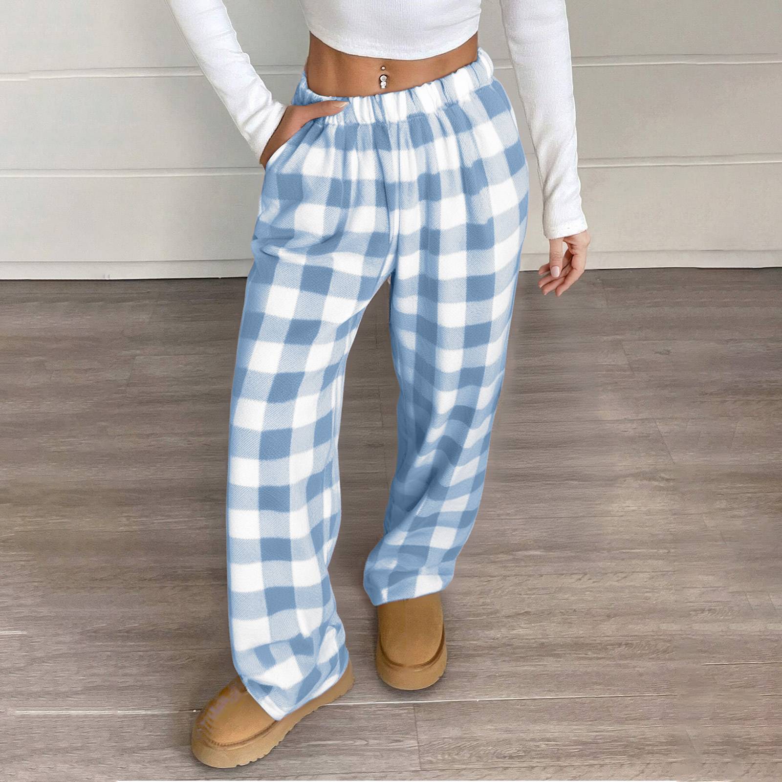 Women Pajama Pants Yoga Pants Elastic Waist Fuzzy Fleece Plaid Bottoms Soft Lounge Sleepwear With Pockets Plush Pajamas Pants