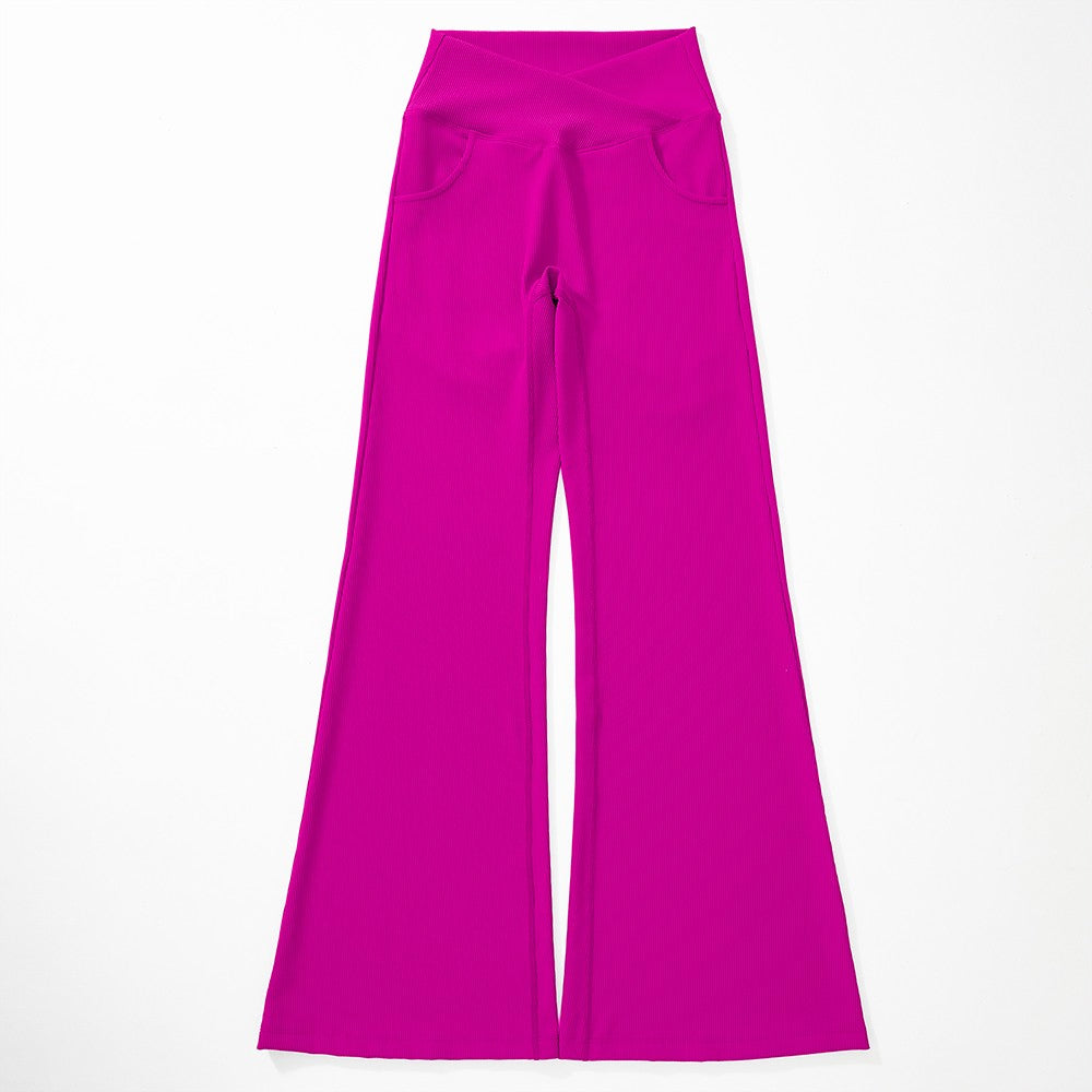 Women Ribbed Crossover Flare Leggings V Waist Slim Fit Yoga Pants with Pockets Workout Fitness Yoga Pants Flared Pants Female