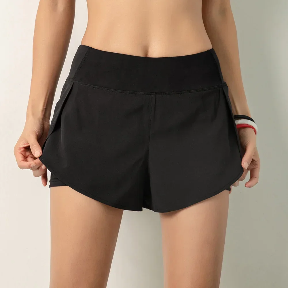 Women Running Shorts 2-in-1 with Pocket Wide Waistband Coverage Layer Liner Lounging Sports Yoga Leggings Gym Fitness Shorts