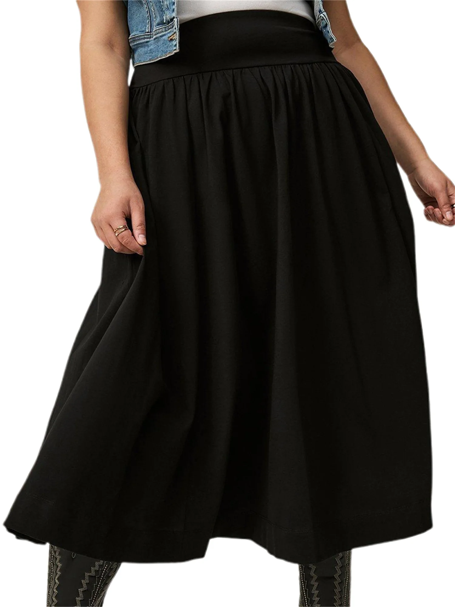 Women s Maxi Skirt Stylish High Waist A-Line Pleated Solid Color Long Skirt for Chic Everyday Wear