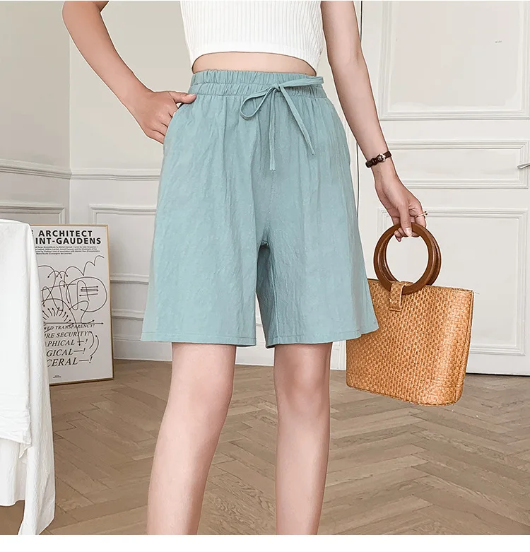 Women shorts Summer Casual Solid Cotton Linen shorts high waist loose shorts for girls Soft Cool female shorts M-3XL