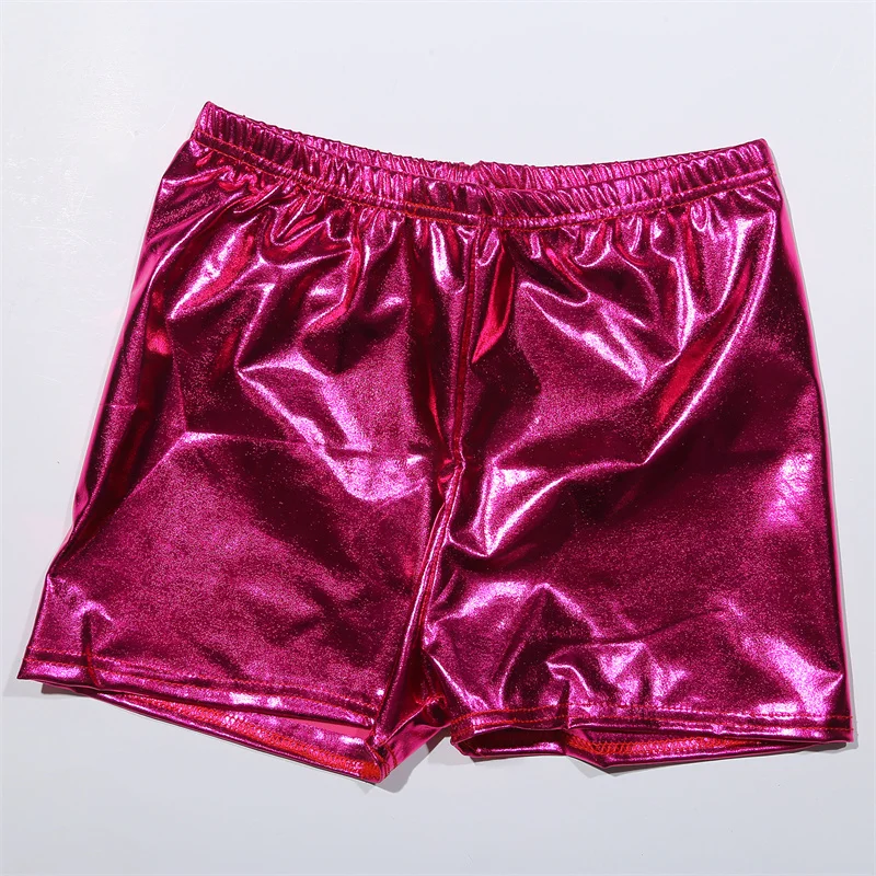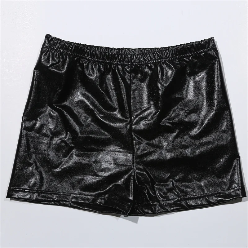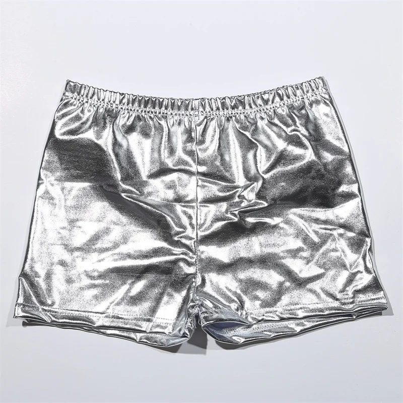 Women Silver Metallic Yoga Shorts Rave Booty Shorts Mid Waist Cheer Shorts PU Shiny Yoga Shorts Femme