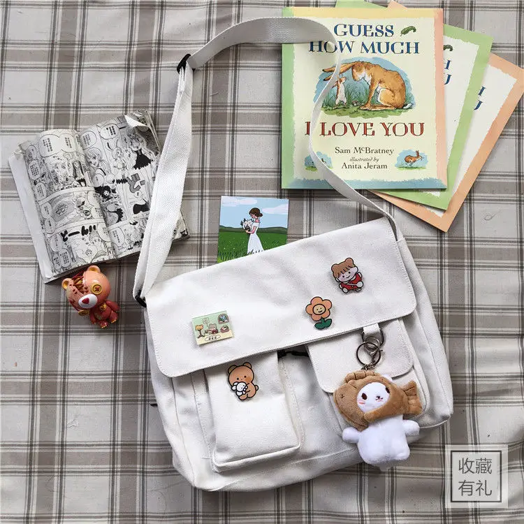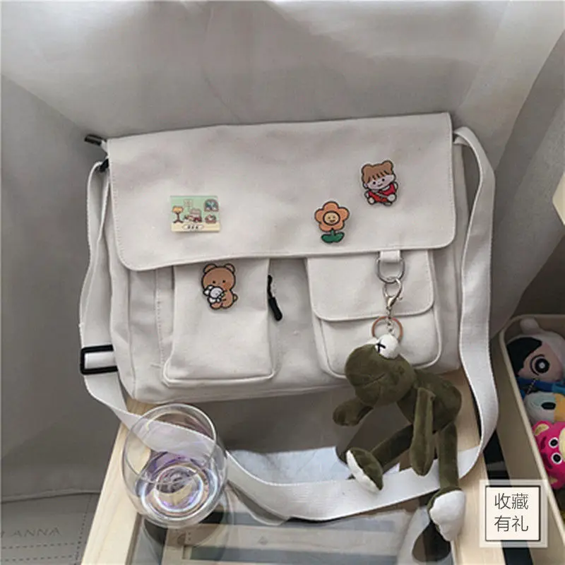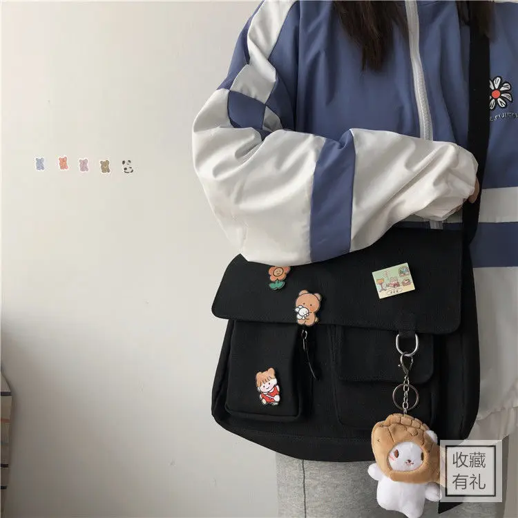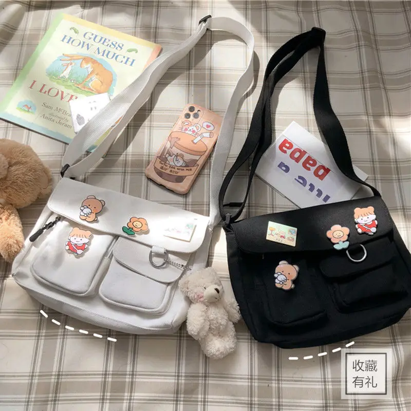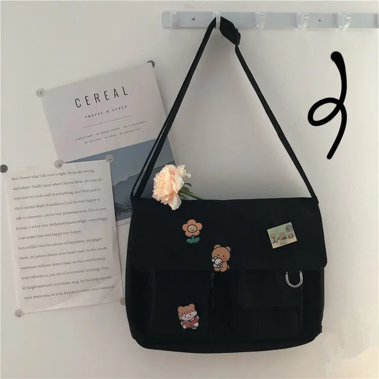 Women Simple Messenger Bag Casual Satchel Ladies Handbags Shoulder Bag Pouch Girls Sweet Printed Canvas Cross School Bags Purses