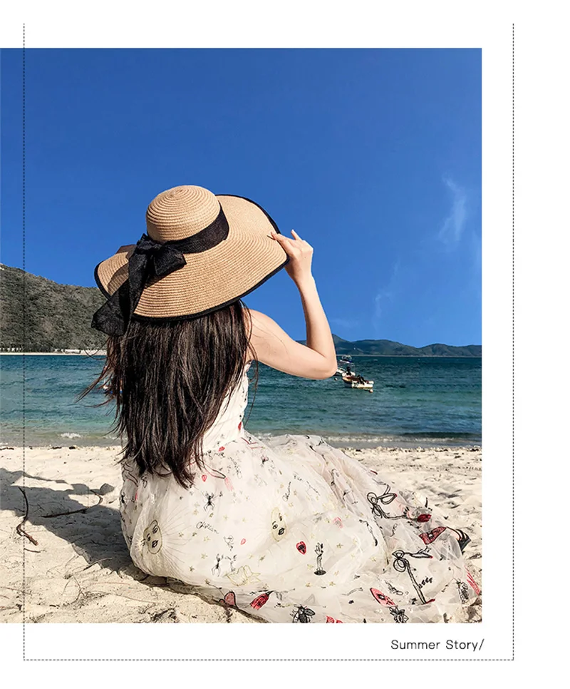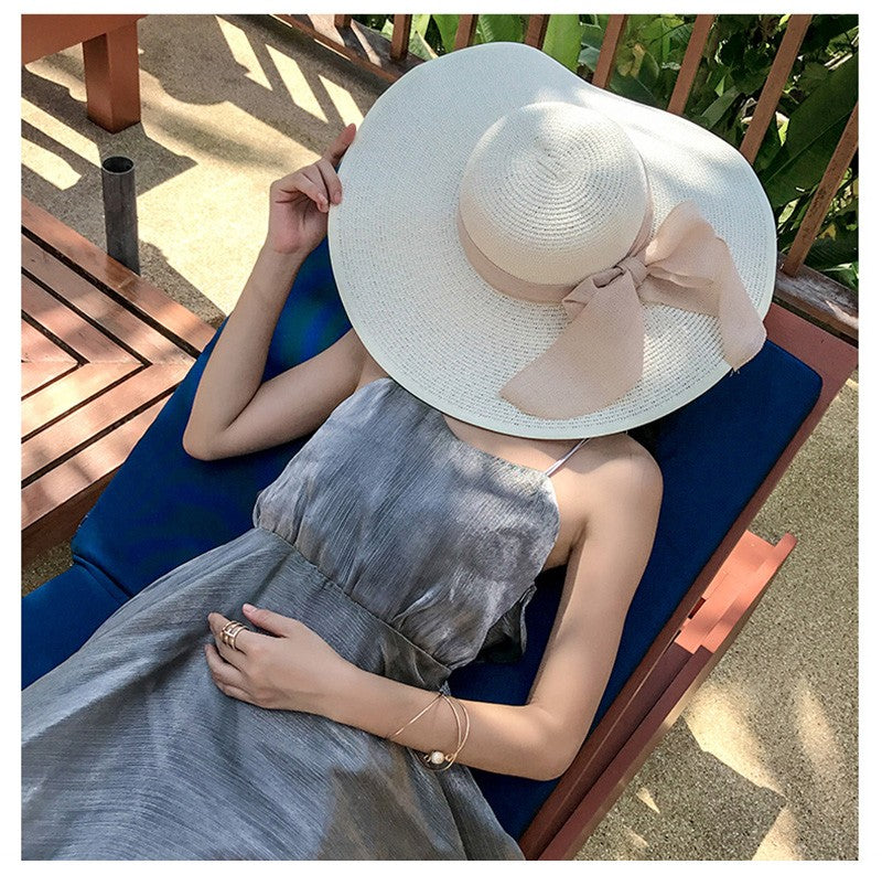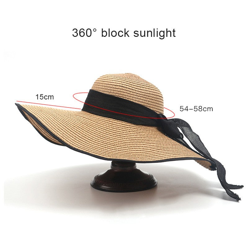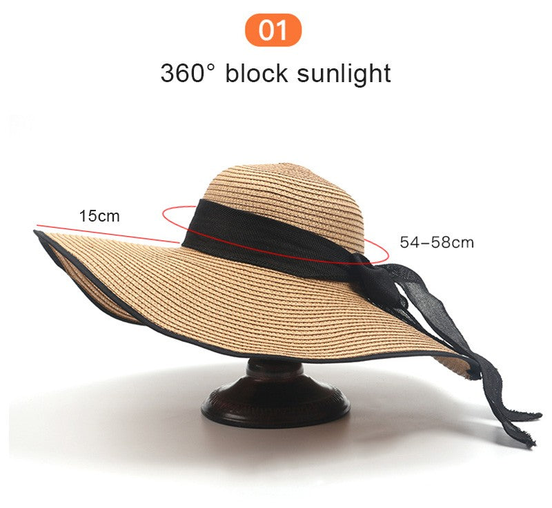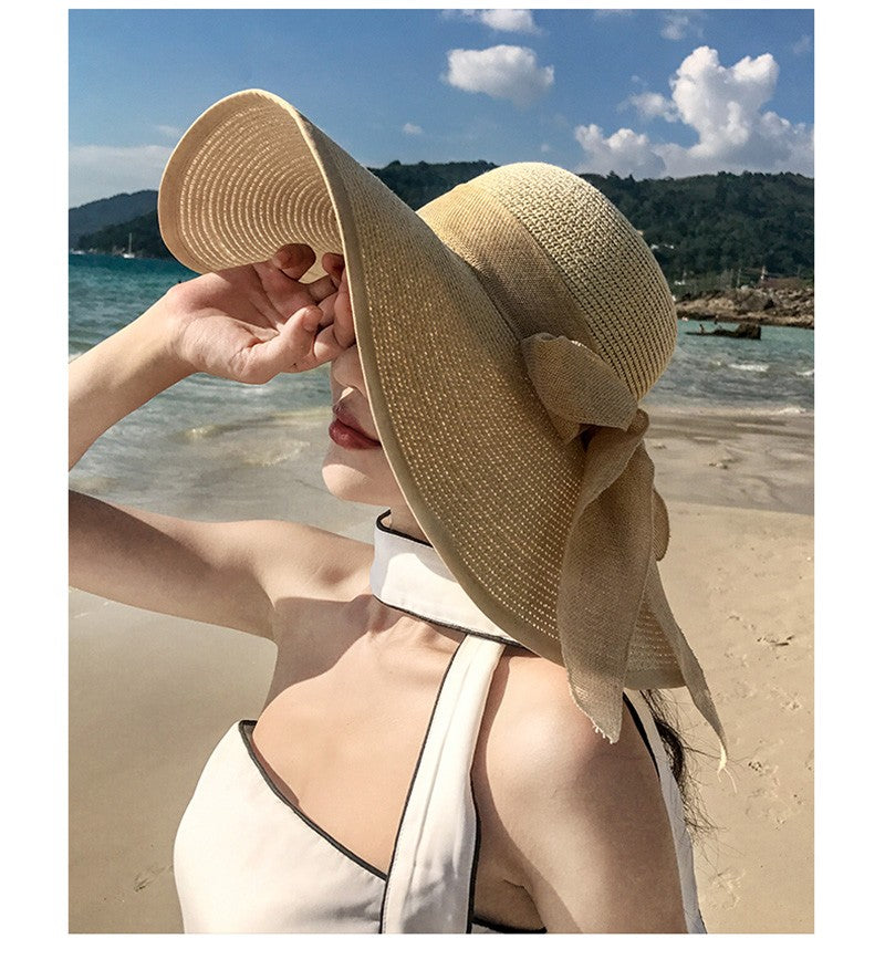 Women Summer Beach Travel Straw Hat Korean Seaside Big Hat Brim Sunblock Sunshade Holiday Foldable Fashion Big Cool Hat