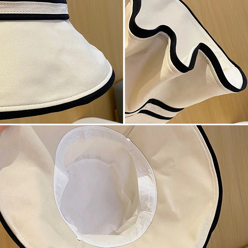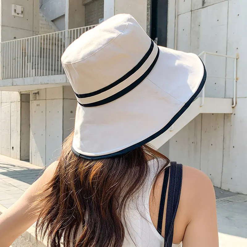Women Summer Wide Brim Striped Bucket Hat Soft Cotton Fordable Panama Cap For Lady Outdoor Solid Color JK Beach Tour Basin Hat