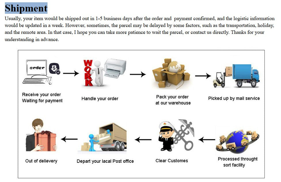 2. Due to the difference between different monitors, the pictures may not reflect the actual color of the item.