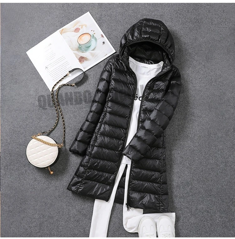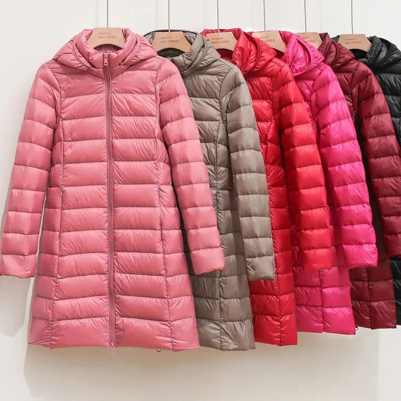 Women Ultra Lightweight Packable Long Puffer Jacket 2023 New Autumn Winter Warm Hat Detachable Hooded Female Coat Parka 5XL 7XL