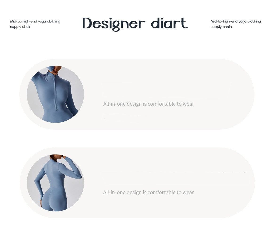 Women Yoga Jumpsuit Fitness Sports Suit Zipper Elastic One-Piece Bodysuits Gym Long Sleeve Gym Runing Push Up Workout Sportwear