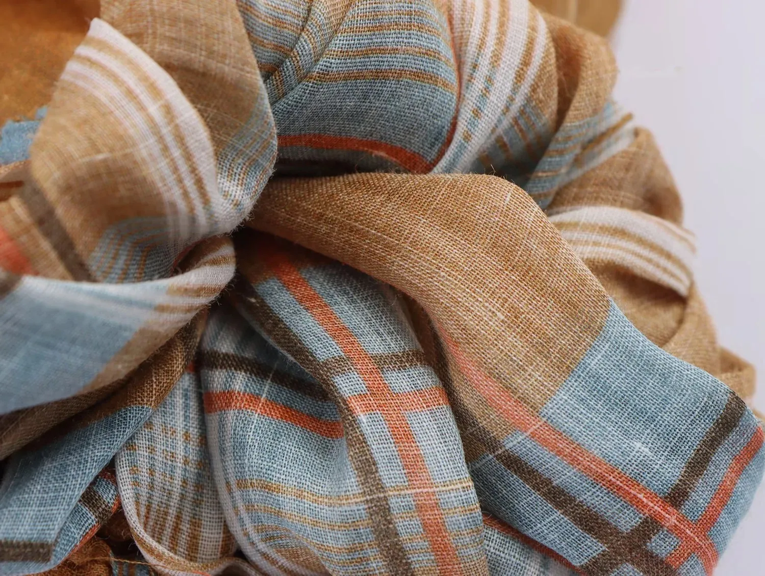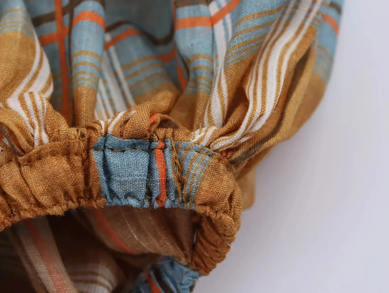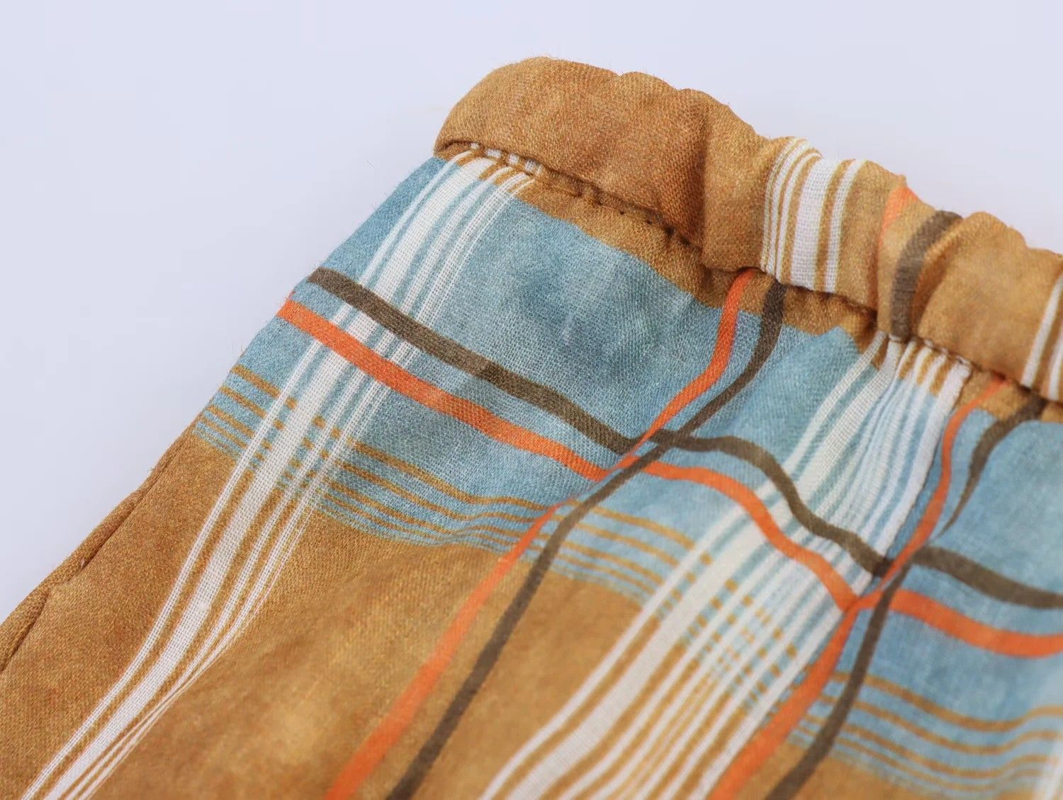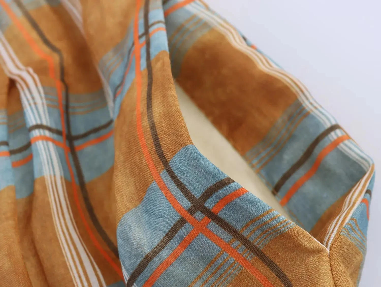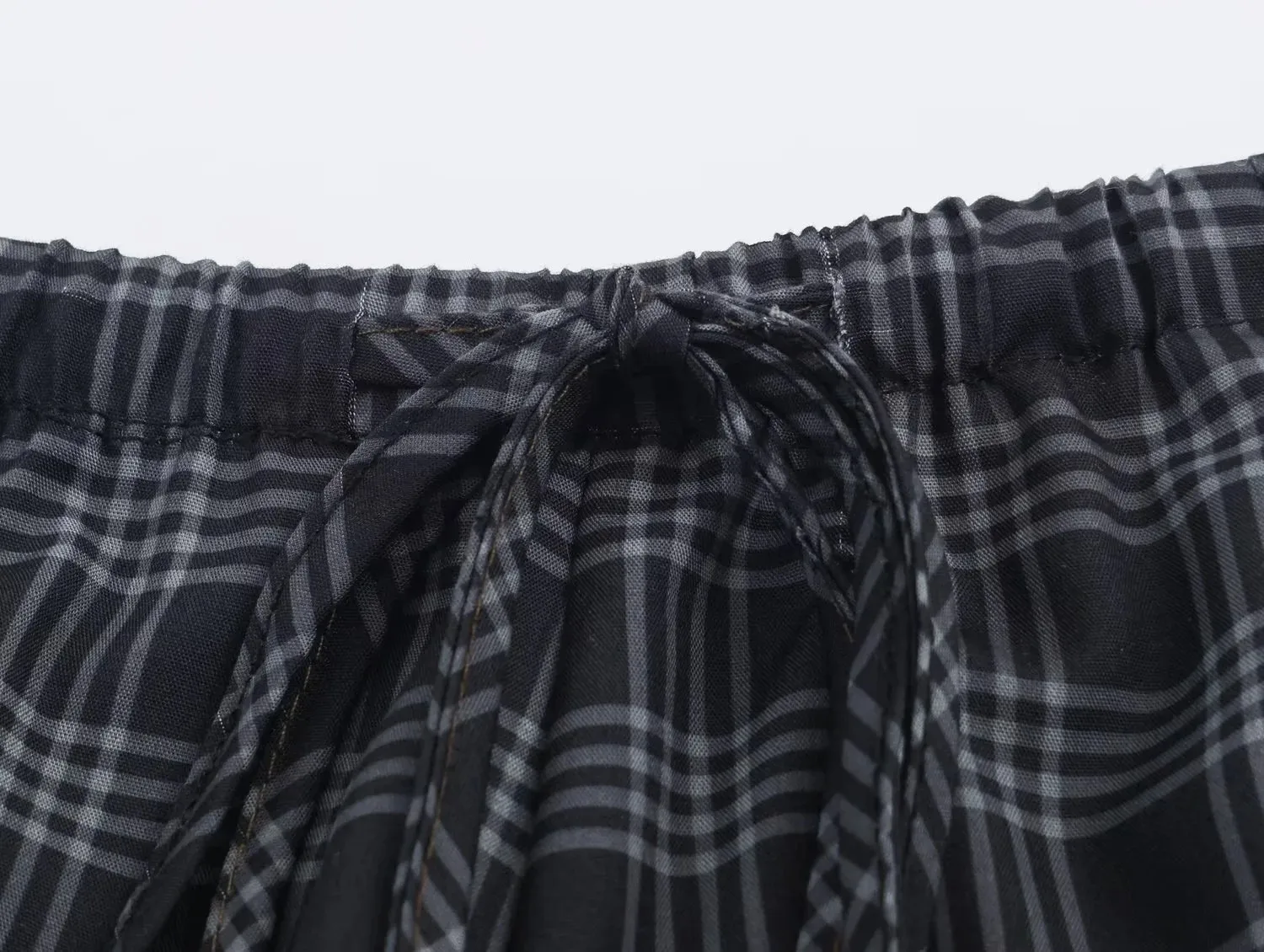 Women's 2025 Autumn Fashion Versatile Ramie Bloomers Plaid Printed Loose Pants Female High-Waist Drawstring Casual Trousers