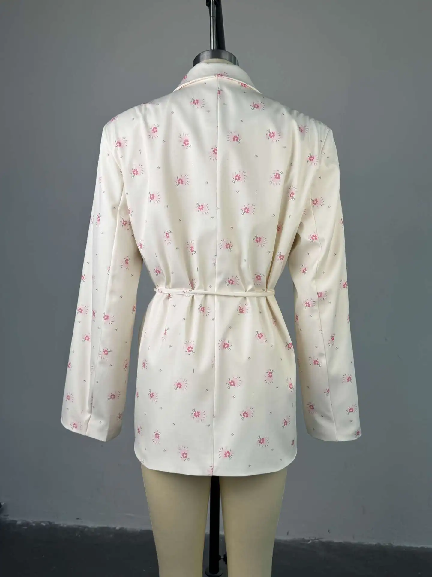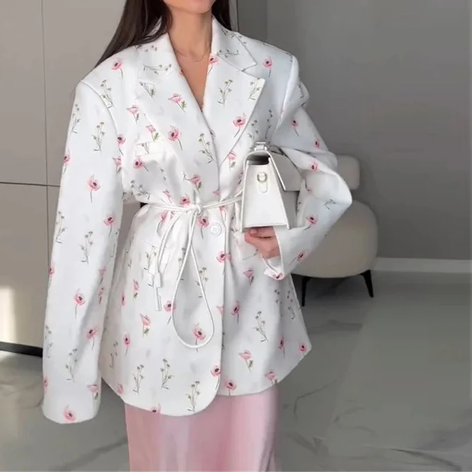 Women's 2025 Spring/Summer New Fashion Printed Loose Suit Collar Belted Waist - cinching Suit Jacket