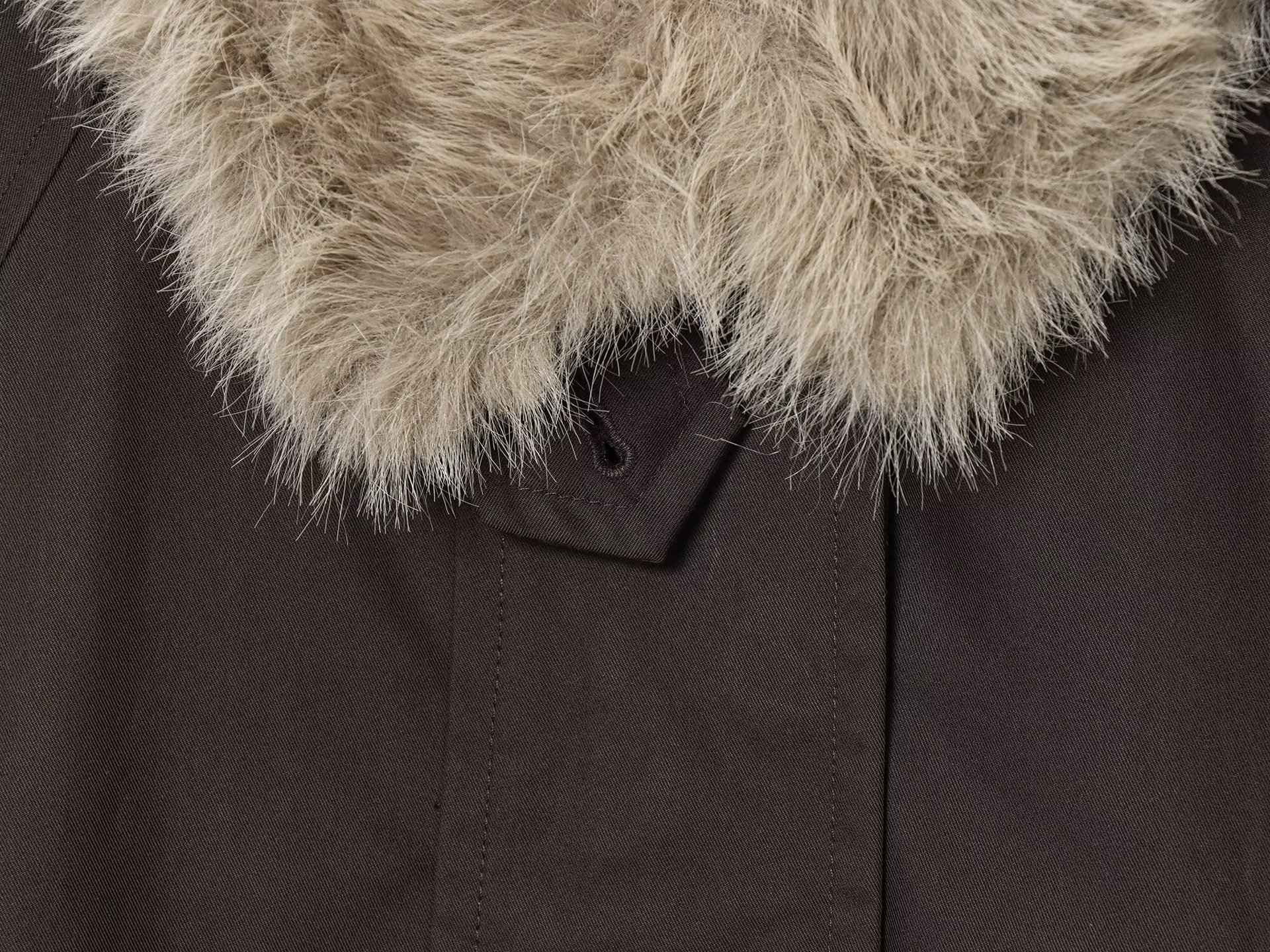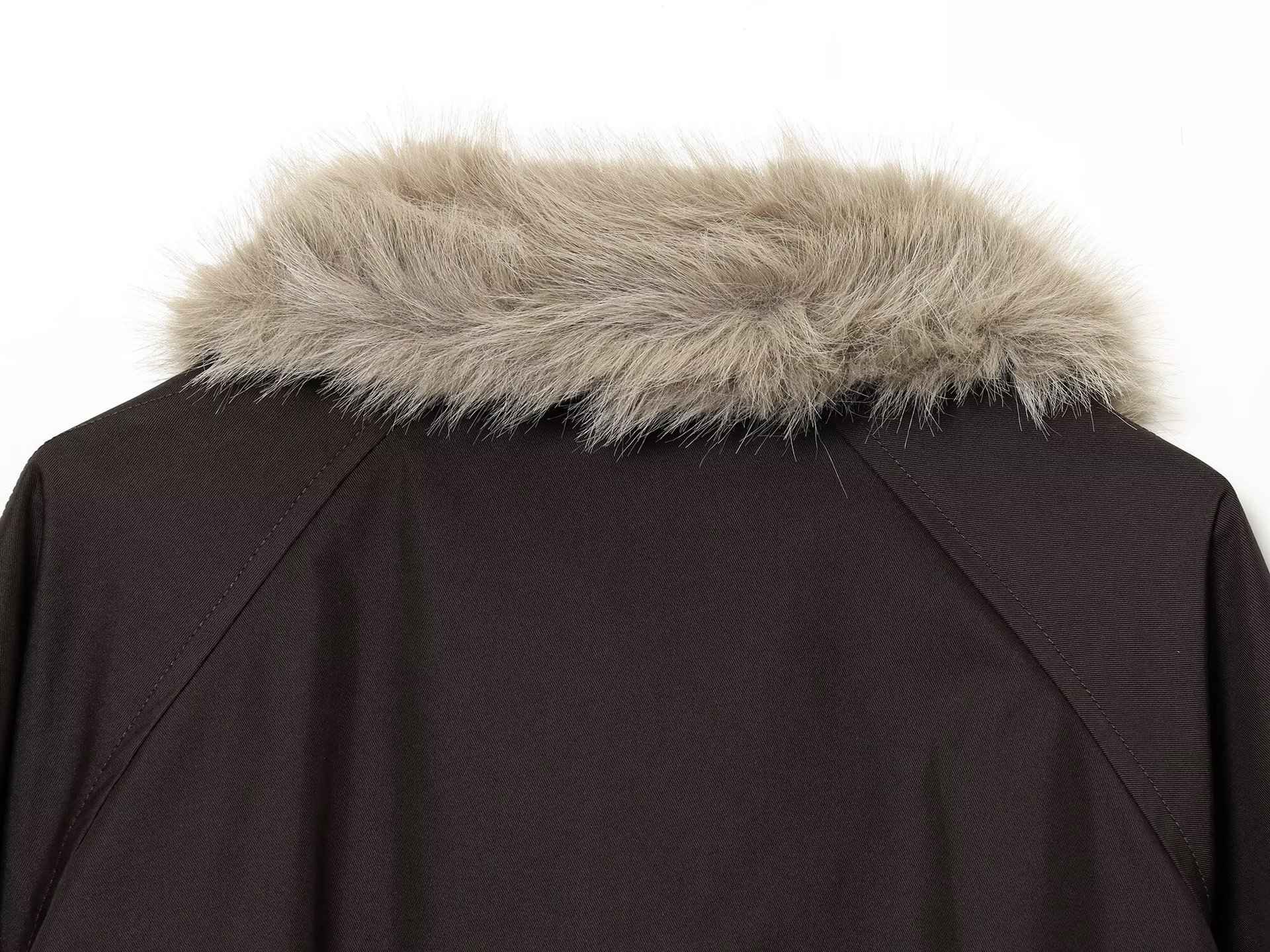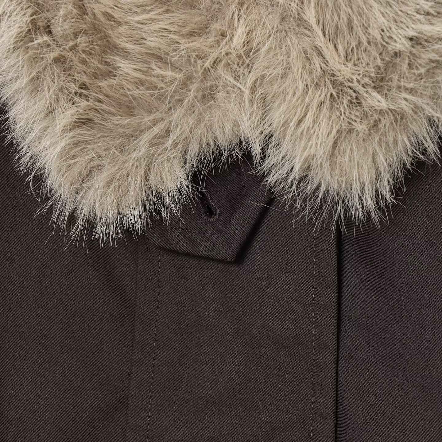 Women's Autumn and Winter Casual Straight Waterproof Parka Jacket with Fur Hem, Warm Zipper Long Sleeve Outwear