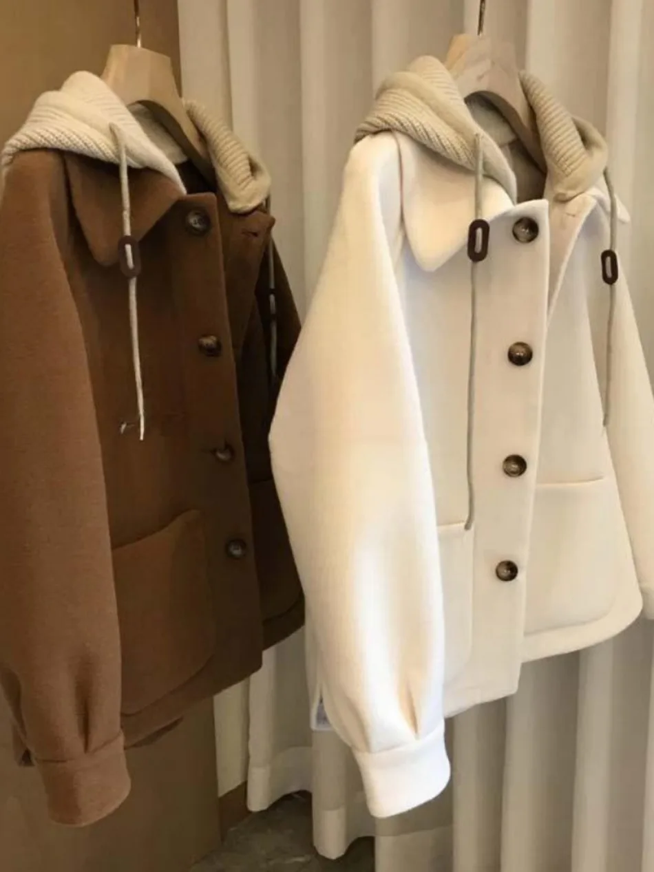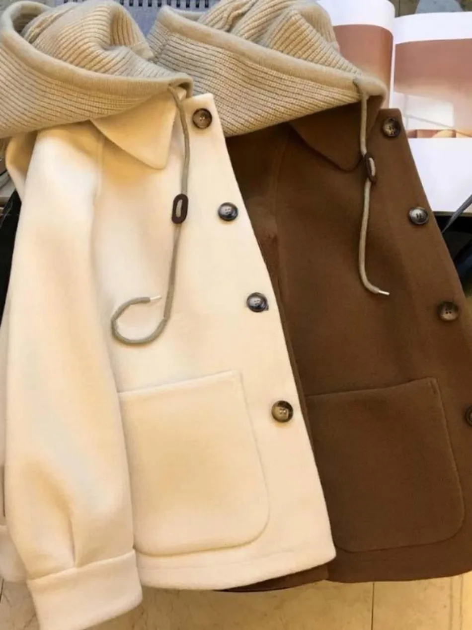 Women's Autumn Winter New Hooded Woolen Jacket New Woolen Coat Style Petite Cropped Thickened Feeling Short Style Overcoat