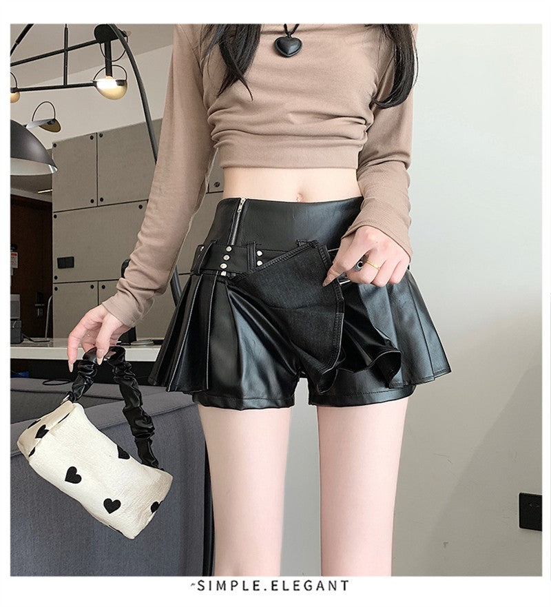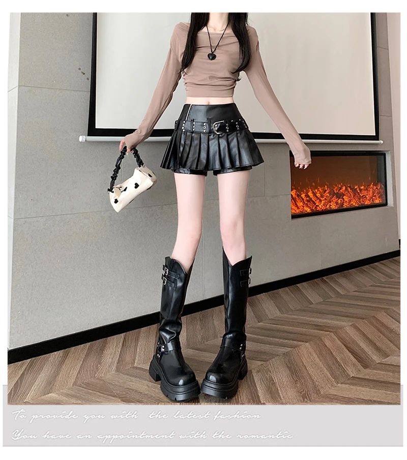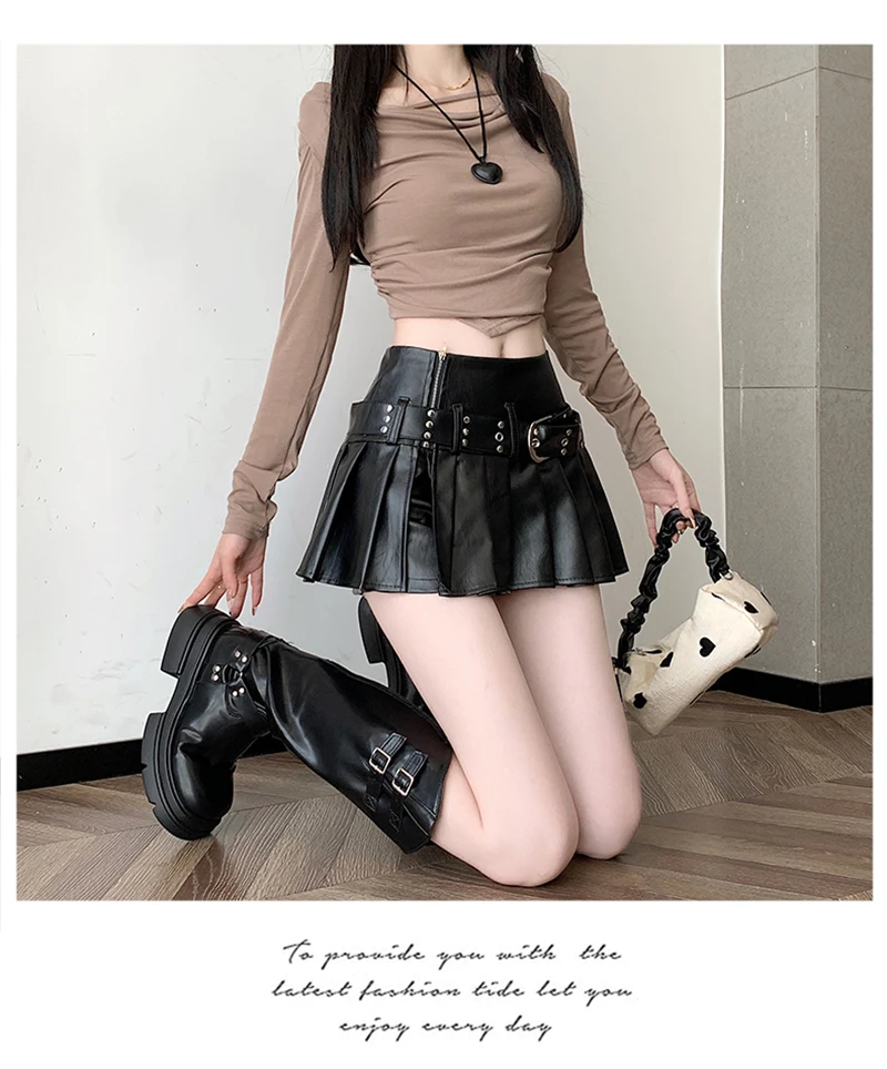 Women's Black Gothic A-line Pleated Leather Skirt Y2k Mini Shorts Skirts Harajuku Korean Emo Skirt 2000s Vintage Clothes Summer
