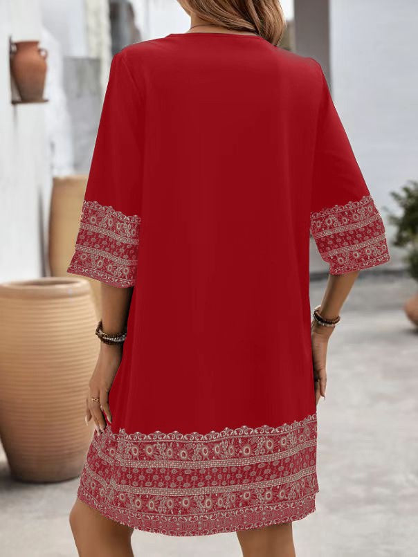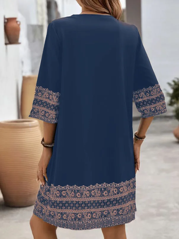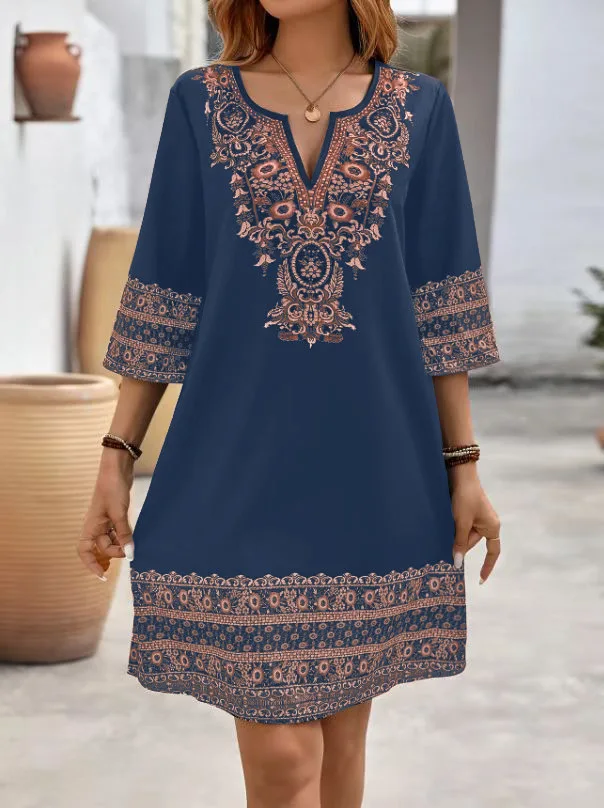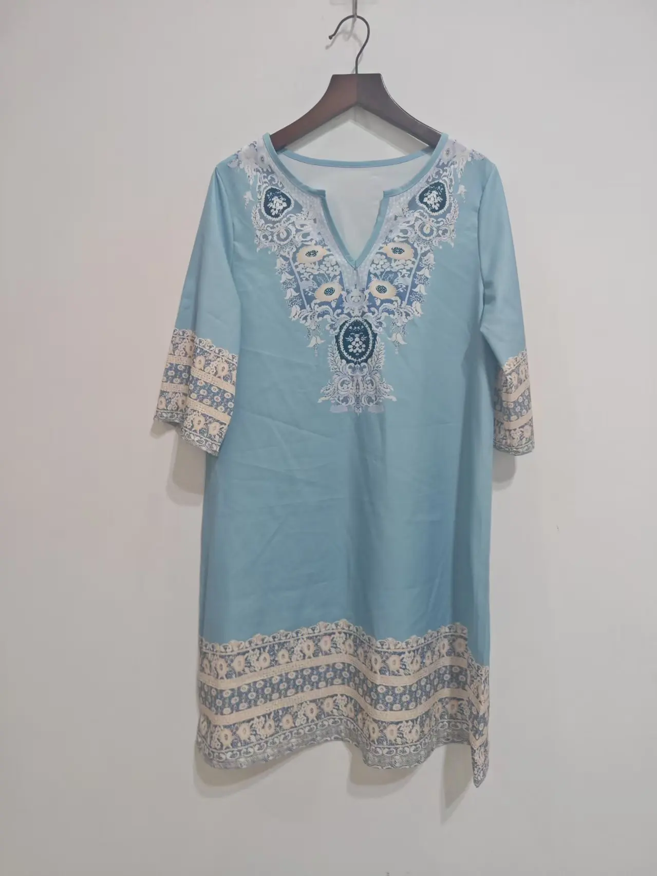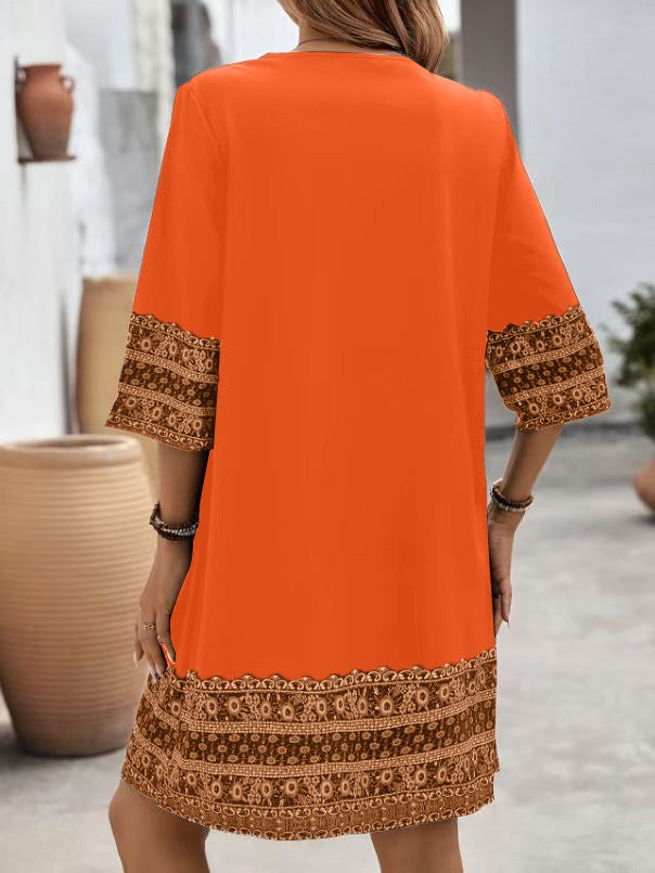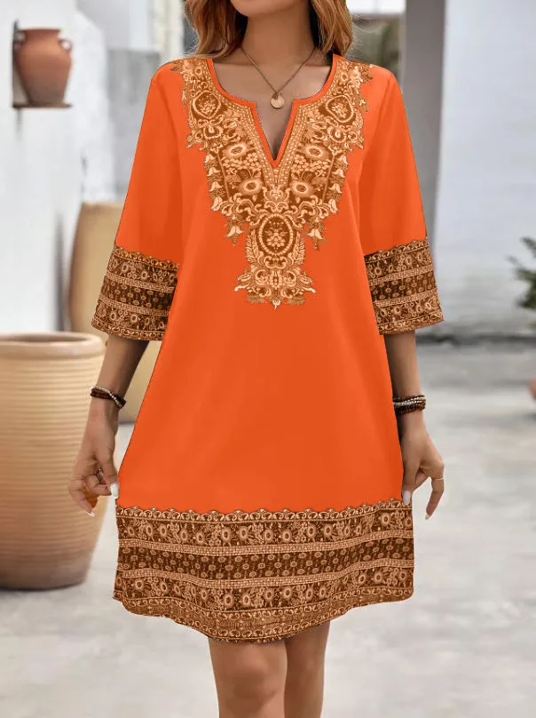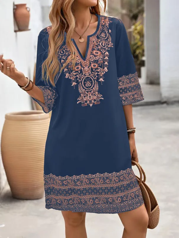 Women's Clothes Casual print Short Sleeve V-Neck Waist Cinched Dress summer vintage New Female Fashion Loose Mini Dresses 2025