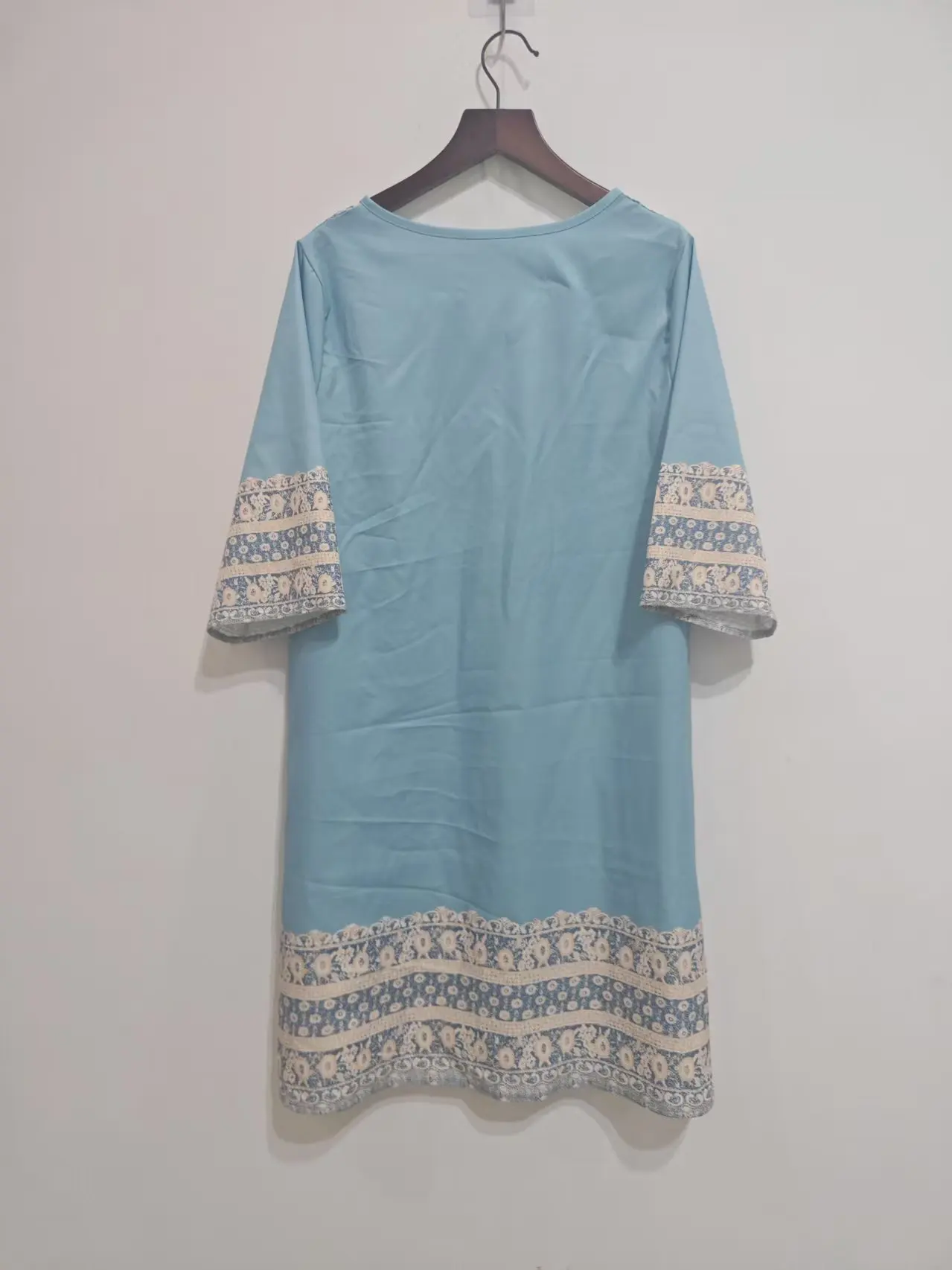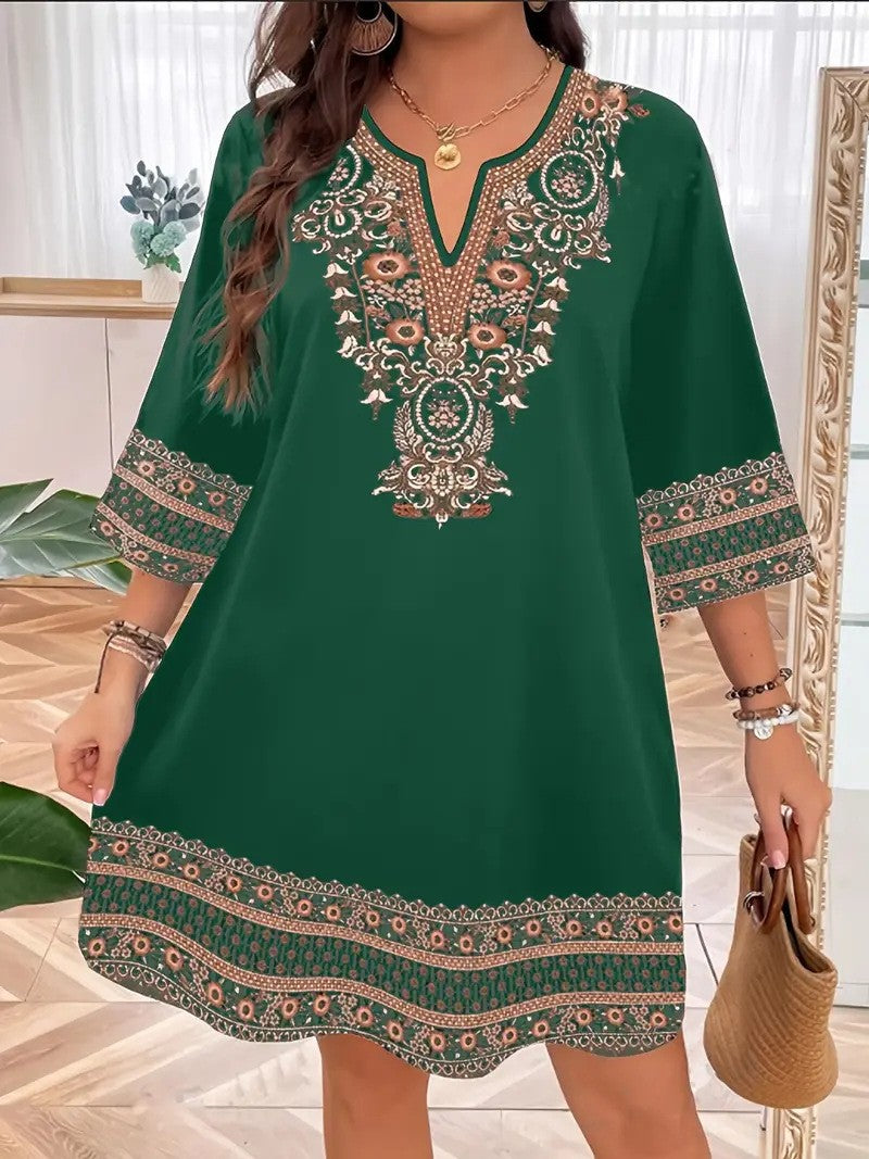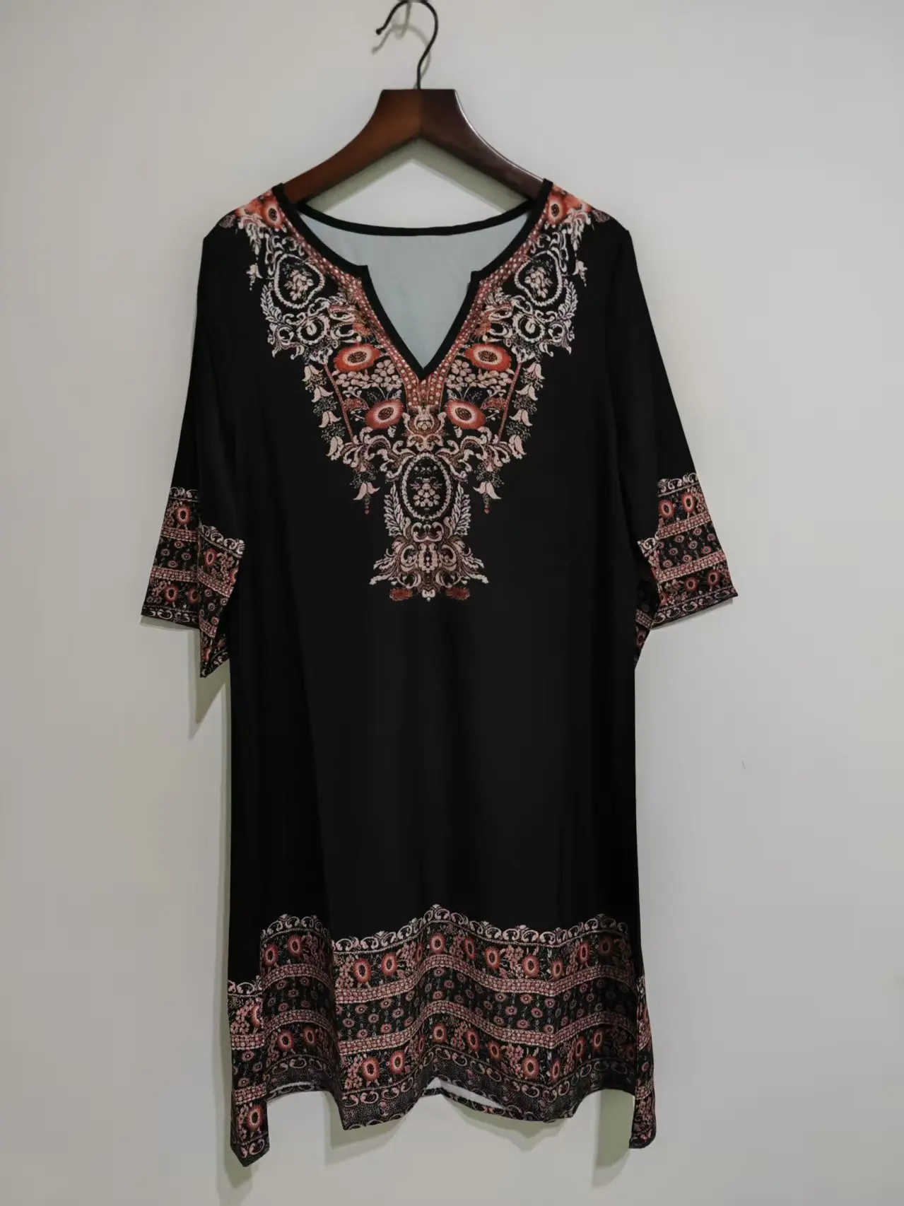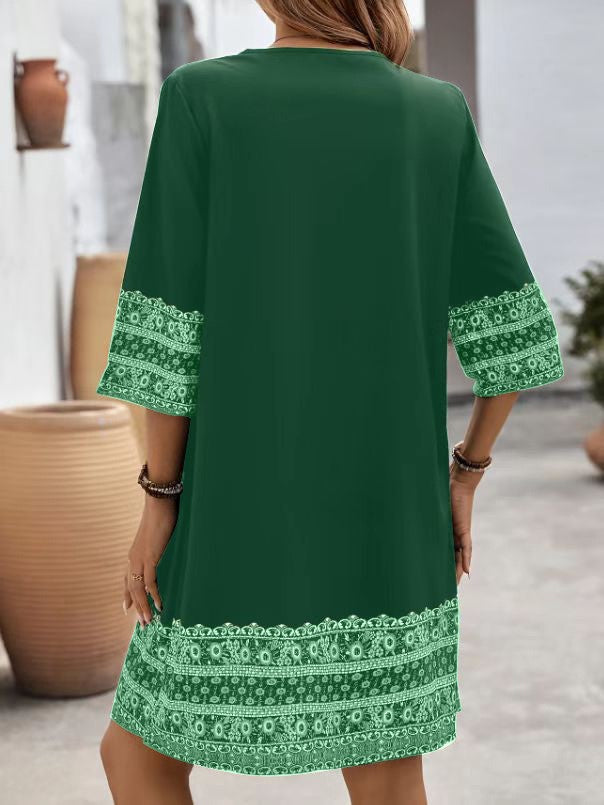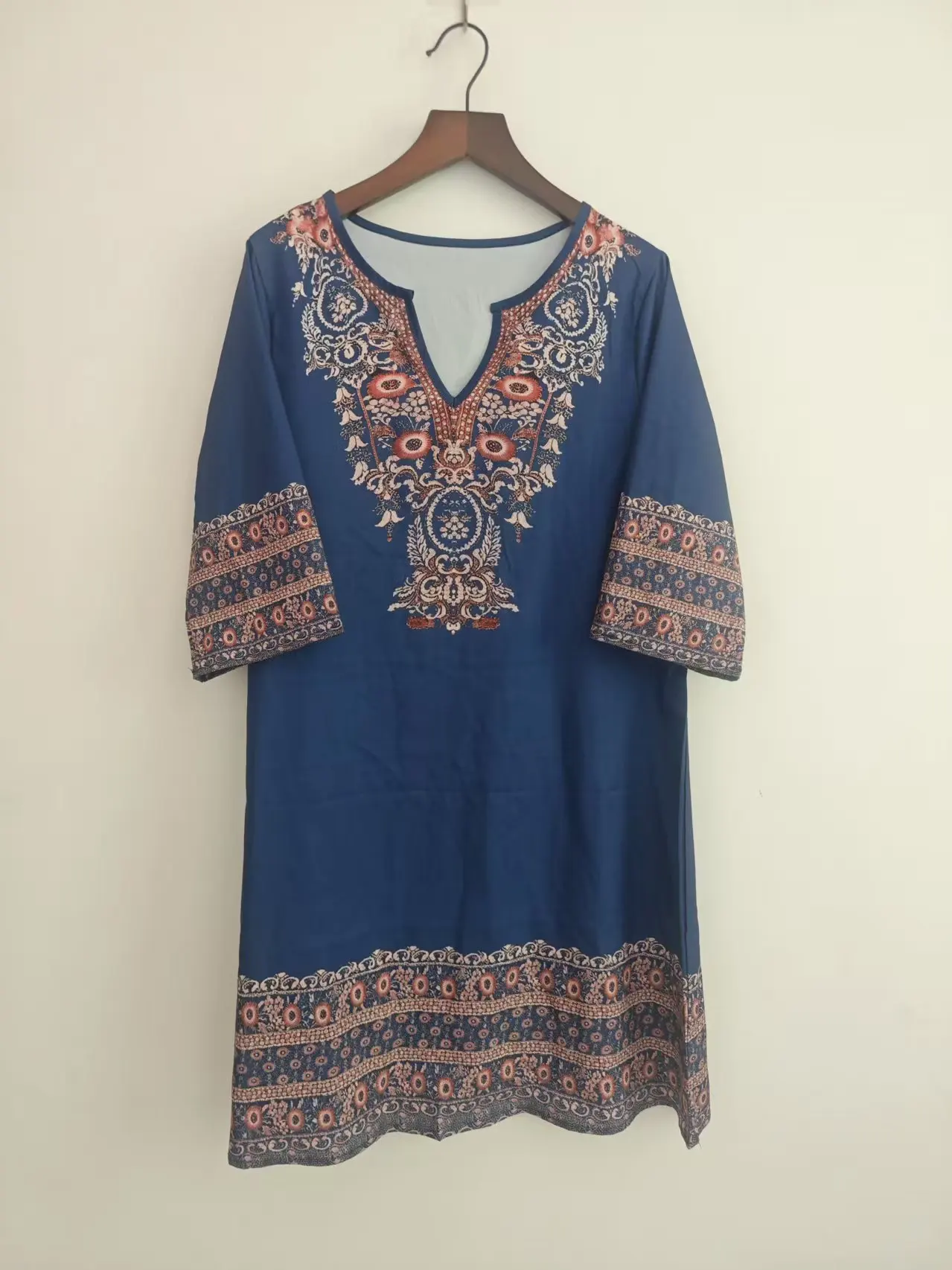 Women's Clothes Casual print Short Sleeve V-Neck Waist Cinched Dress summer vintage New Female Fashion Loose Mini Dresses 2025