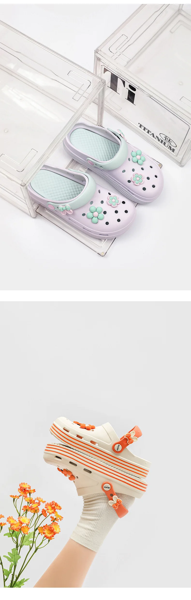 Women's Cute Platform Garden Clogs, Solid Color Closed Toe Non-slip Sandals, Indoor & Outdoor Slides