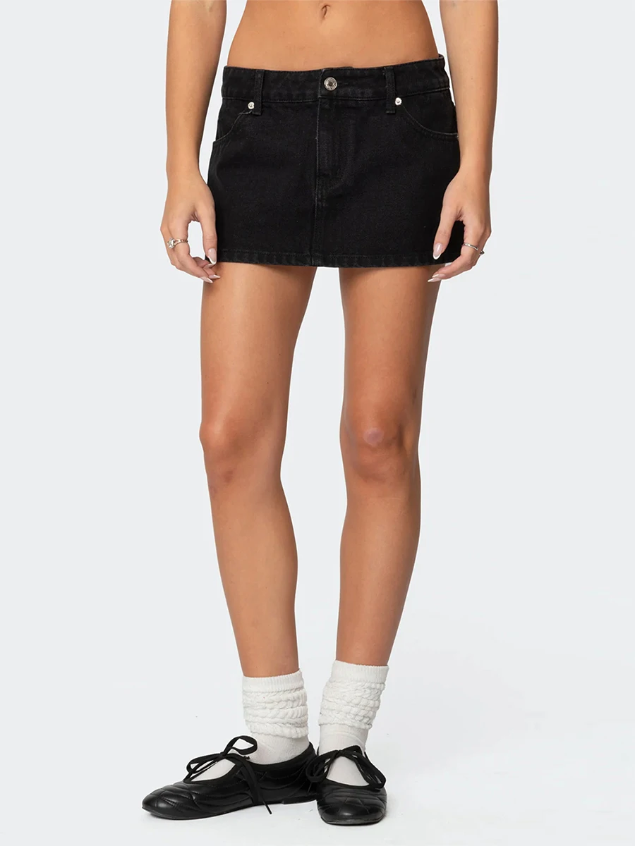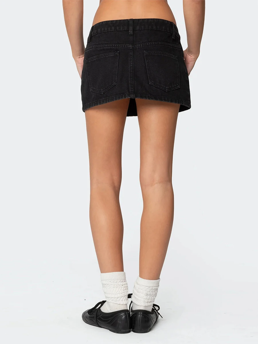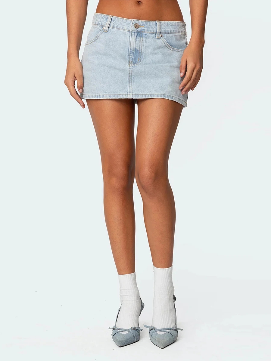 Womens Denim Mini Skirt Y2k Vintage Low Rise Jean Skirt Sexy Going Out A-Line Pencil Bodycon Short Skirt with Pockets