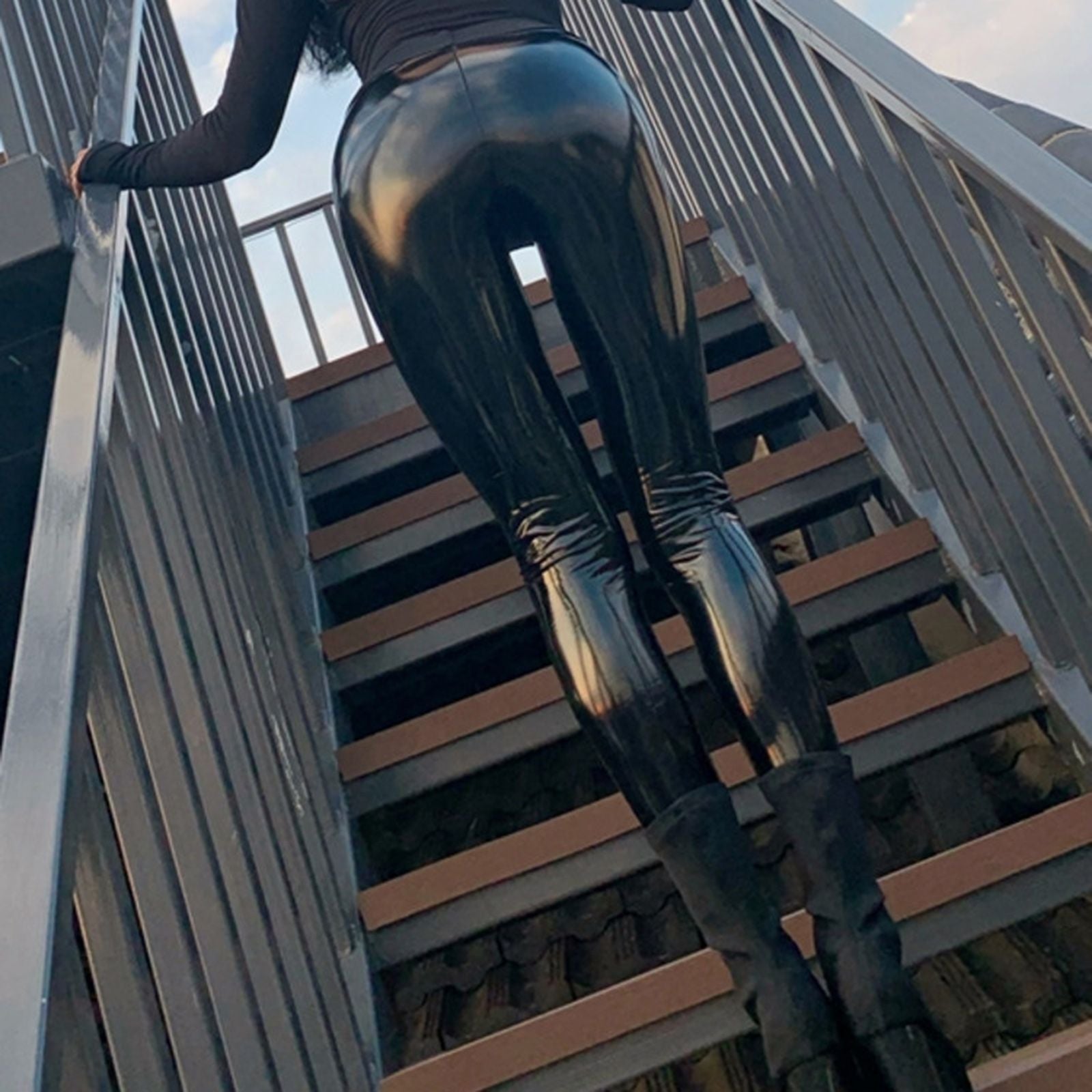 Womens Fashion Patent Leather Latex Pants Wet Look High Waist Stretchy Leggings Skinny Trousers Party Clubwear for Pole Dancing
